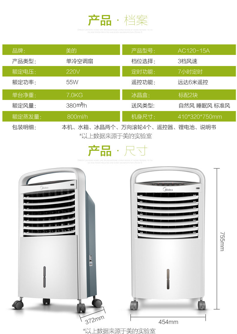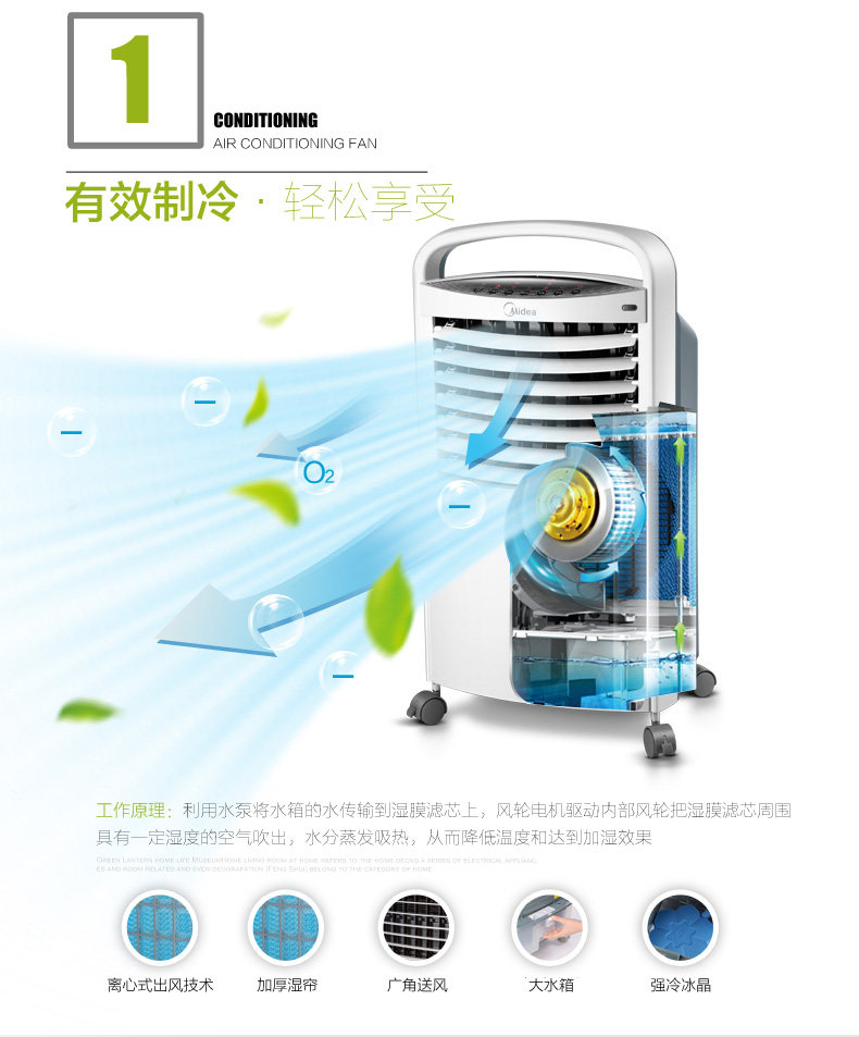 Midea Conditioning Fean Охлаждающий вентилятор испарившийся мобильный независимый резервуар для воды Большой объем воздуха AC120-15A Оригинальный дом