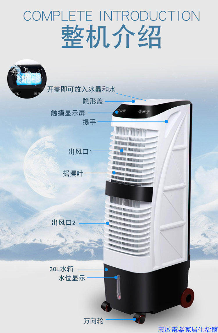 义展 Электрический воздух -кондиционирование вентиляторов Экологически чистый мобильный холодный вентилятор Home Water Air -Conditioning Дистанционное управление воздушным кондиционированием. Одно холодный центробежный вентилятор