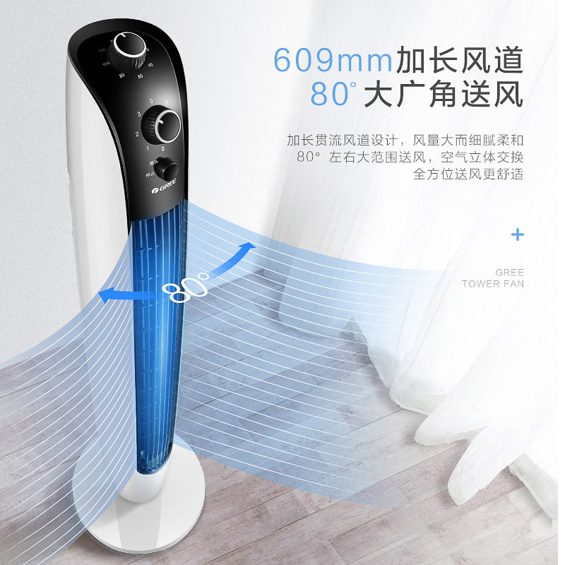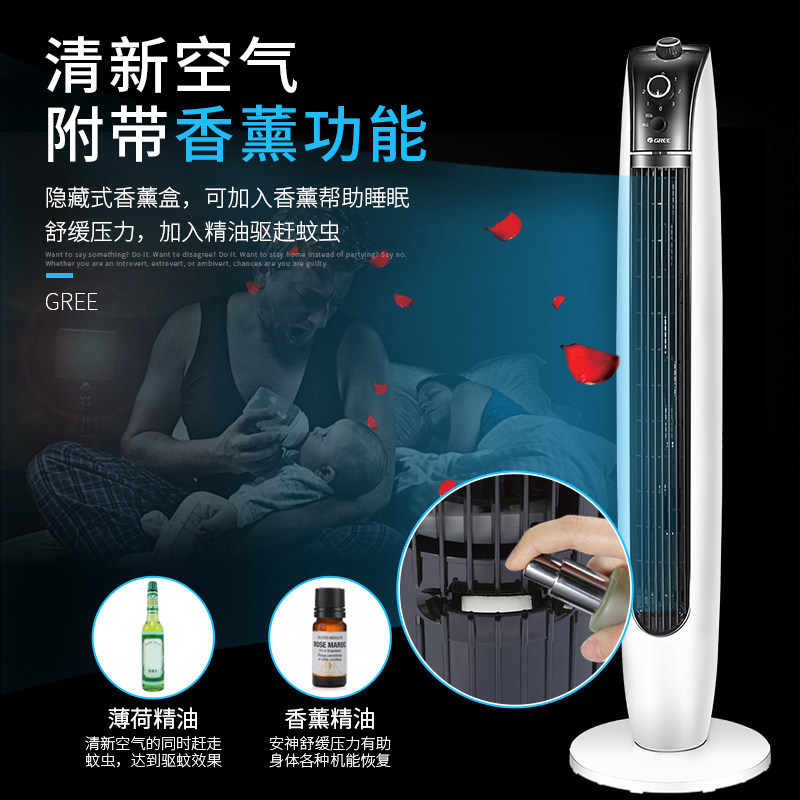Вентилятор Electric Tower Gree Tower показывает головой к домашнему настольному настольному басу.