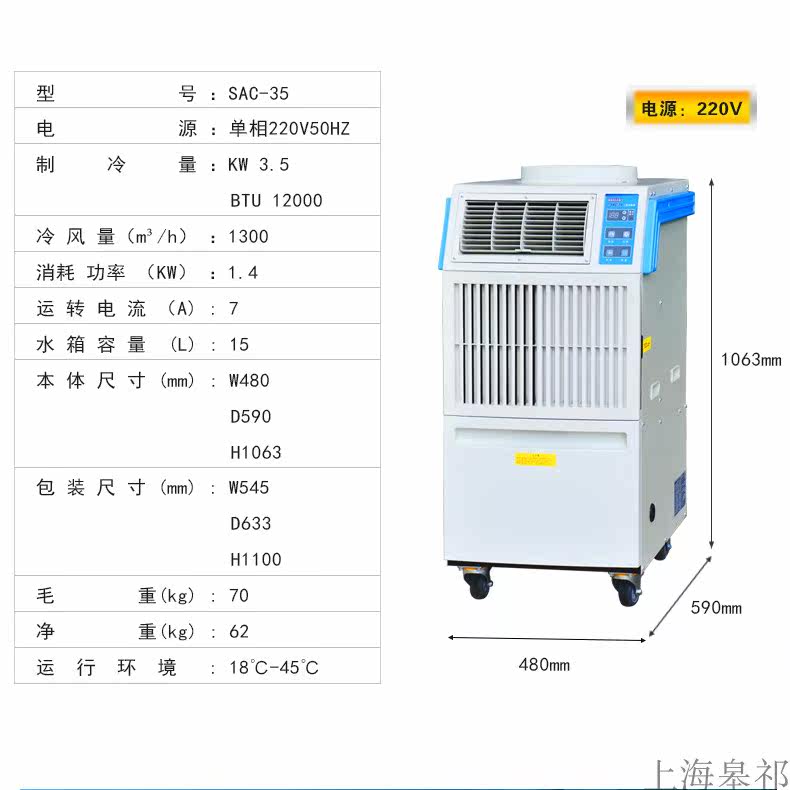 Wuxi Winter Summer Dongxia Mobile Cold Fan Pustry Conditing Conditing SAC-35 Охлаждающая способность 3,5 кВт кондиционер воздуха