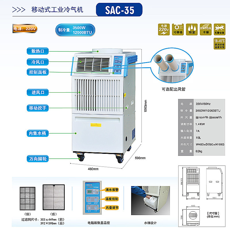Зимняя и летняя SAC35 Промышленного мобильного воздушного воздуха -кондиционера.