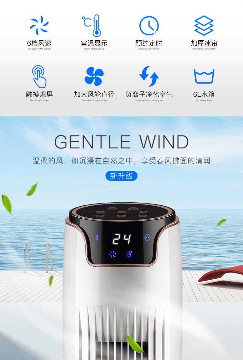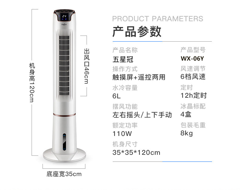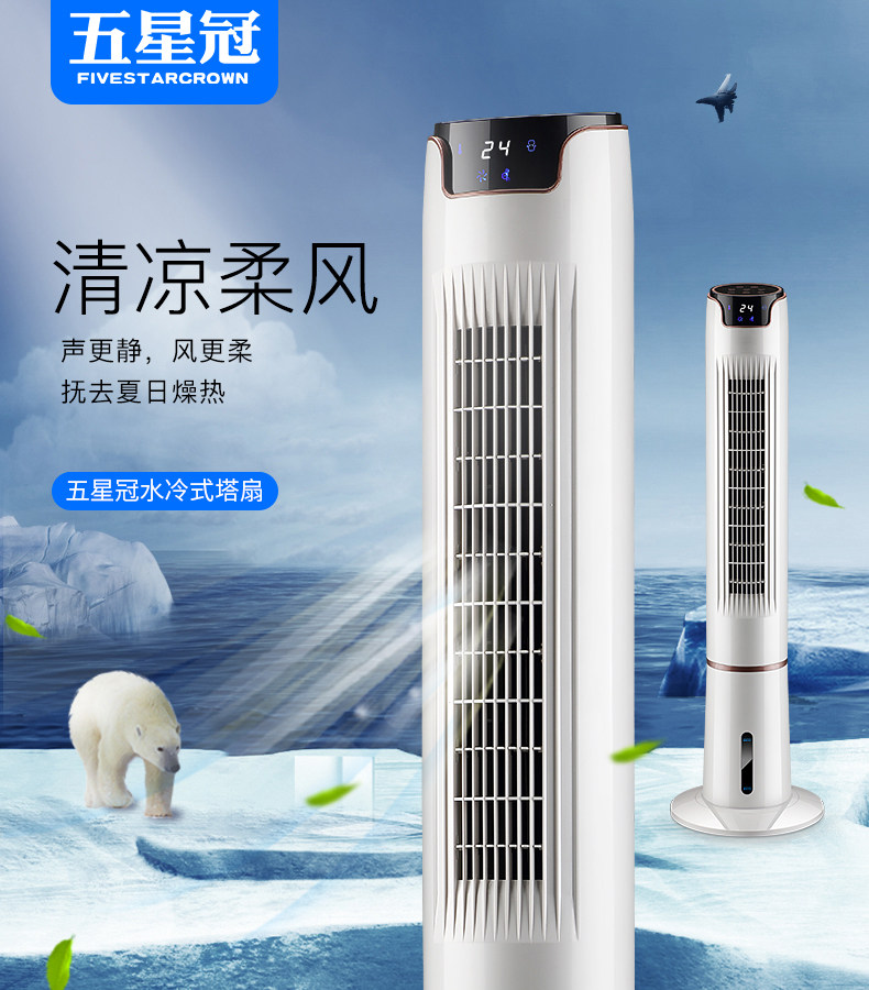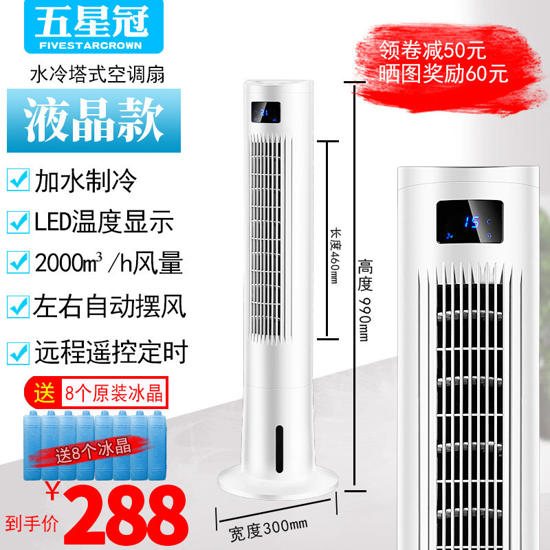 Пятизвездочная корона Water Water Cold Tower Fan Fan Fan Fan Fan Fan Fan Check The Head Удаленно управляя безмолвным настольным настольным вентилятором.
