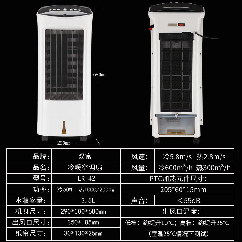 双富 Вентилятор с кондиционером теплый и теплый двойной энергия, способствующая энергии, общеживающую мощность, маленький мобильный холодный вентилятор горячий и холодный кондиционер воздуха