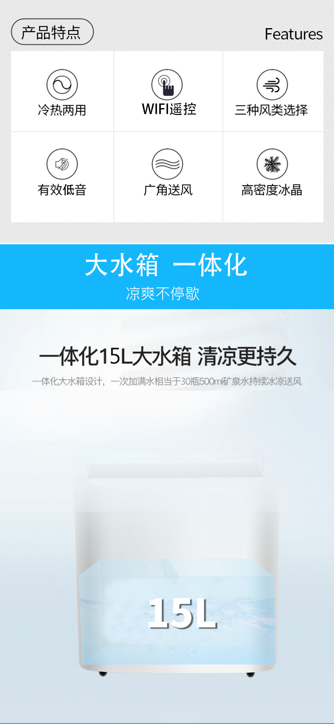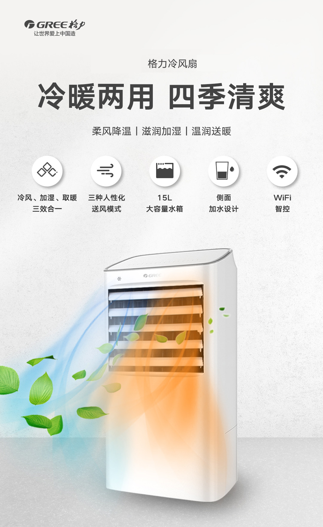 Вентилятор по кондиционеру Gree холодный и теплый двойной использование Wi -Fi Дистанционное управление Домашнее Умное вода холодное вентилятор охлажда