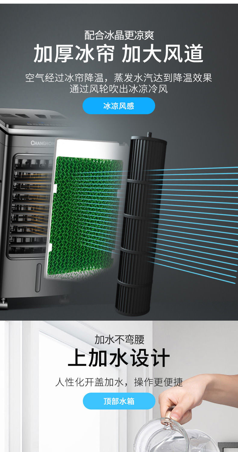 Changhong 229 Кондиционирование воздуха плащ и плащ с двойным охлаждением Дом Добавить воду холодного вентилятора.
