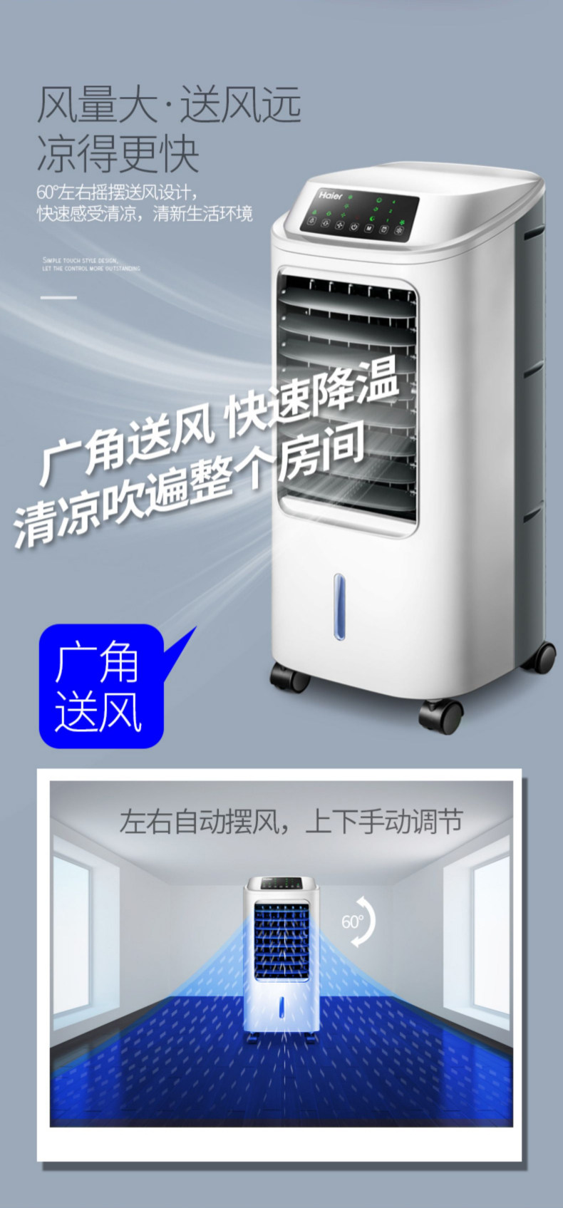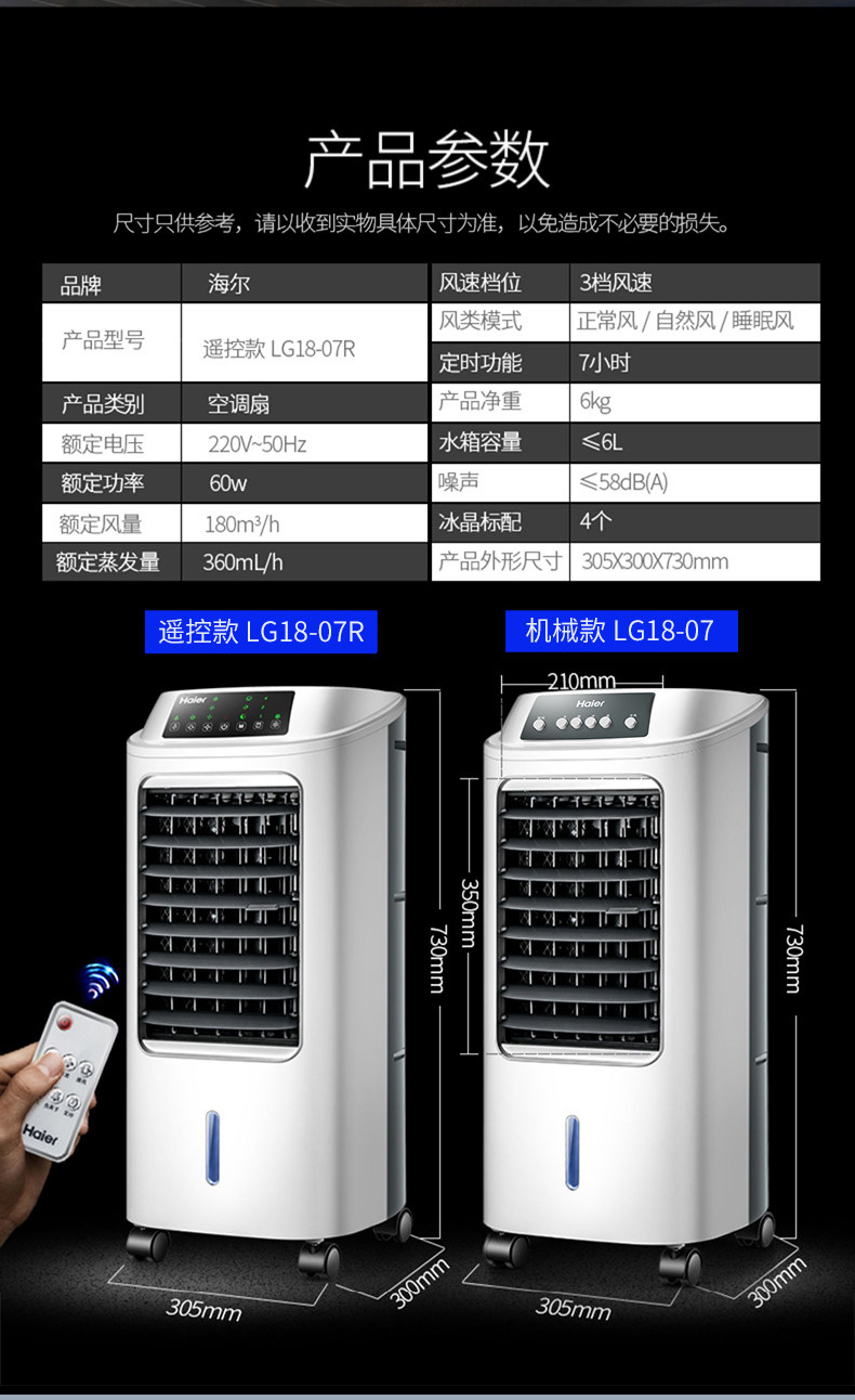 Вентилятор Haier Conditioning Fan Охлаждающий вентилятор Добавить влажный холодильный охлаждающий вентилятор. Вентилятор Холодильник Маленький кондиционер