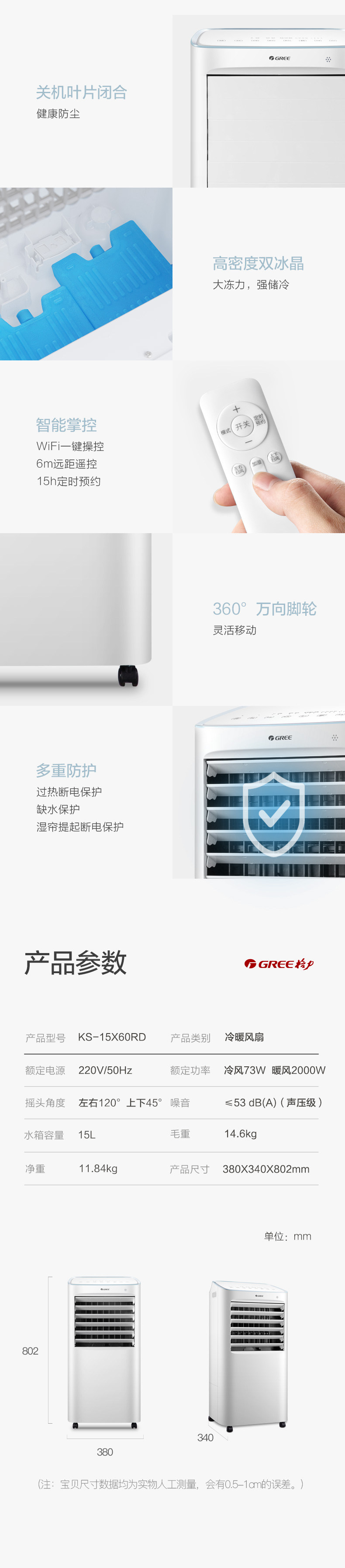 Gree Home Home Direte Control Wi-Fi Cold Fan Conditioning Clook и плащ с двумя использованием маленького воздушного вентилятора KS-15X60RD
