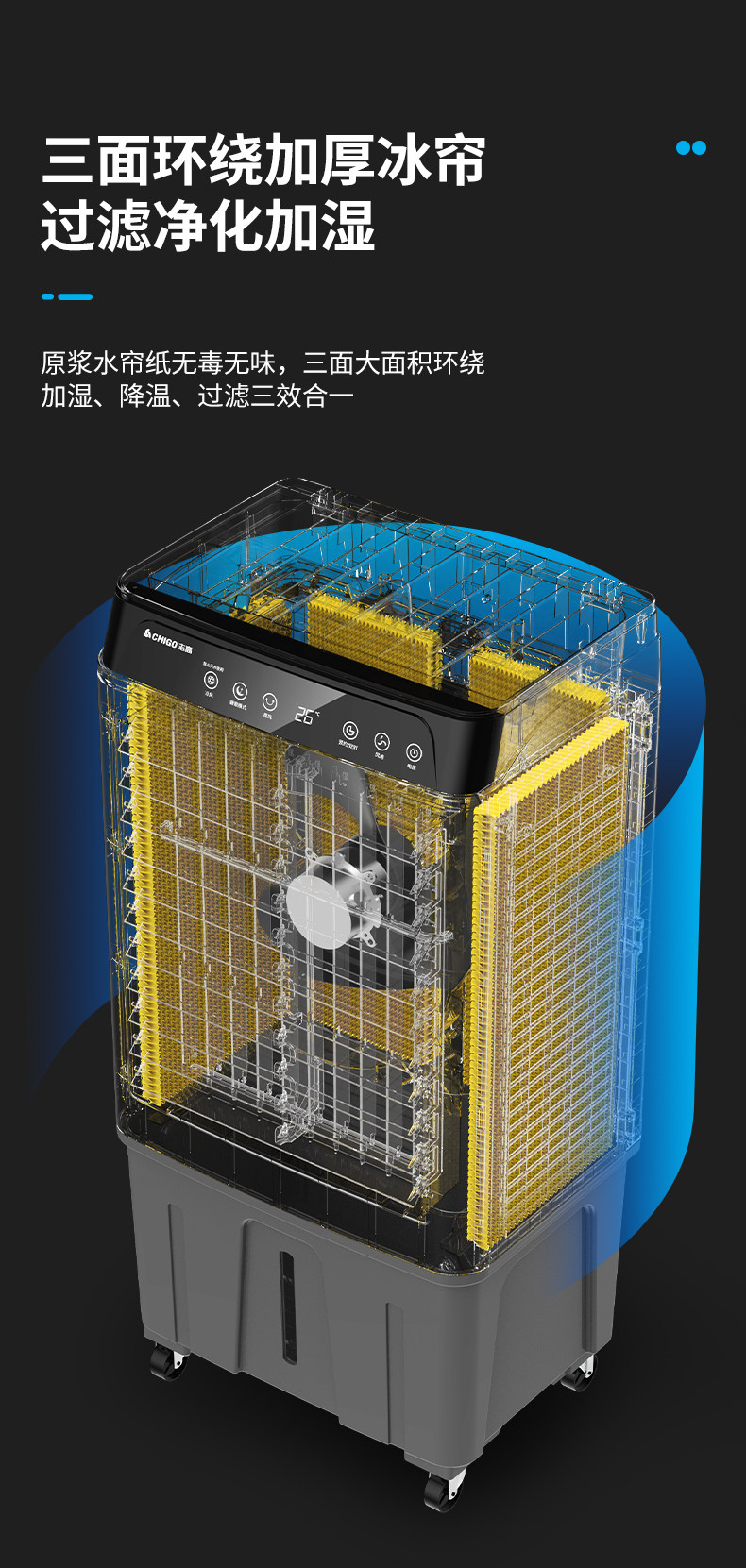 Вентилятор Zhigao Conditioning Fean Терминал промышленные коммерческие мобильные охлажденные вентиляторы дома спальня вода холод 2024 Новая модель 210