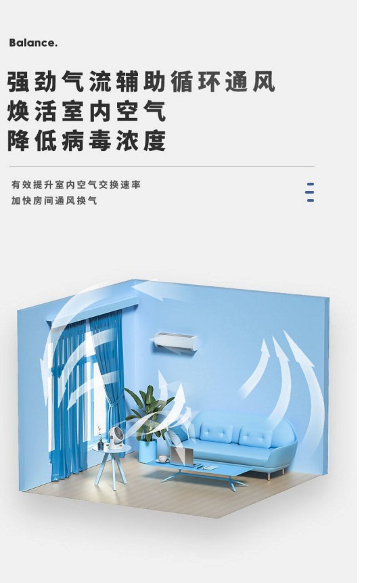 - Основная модель воздушного циркулирующего вентилятора синего цвета
