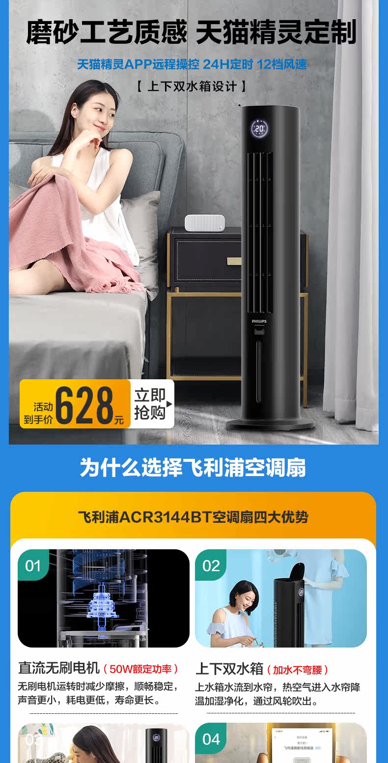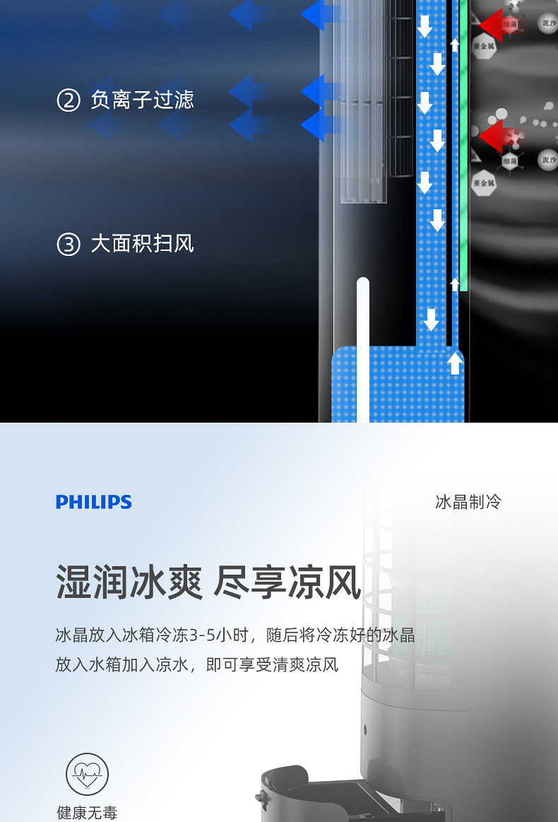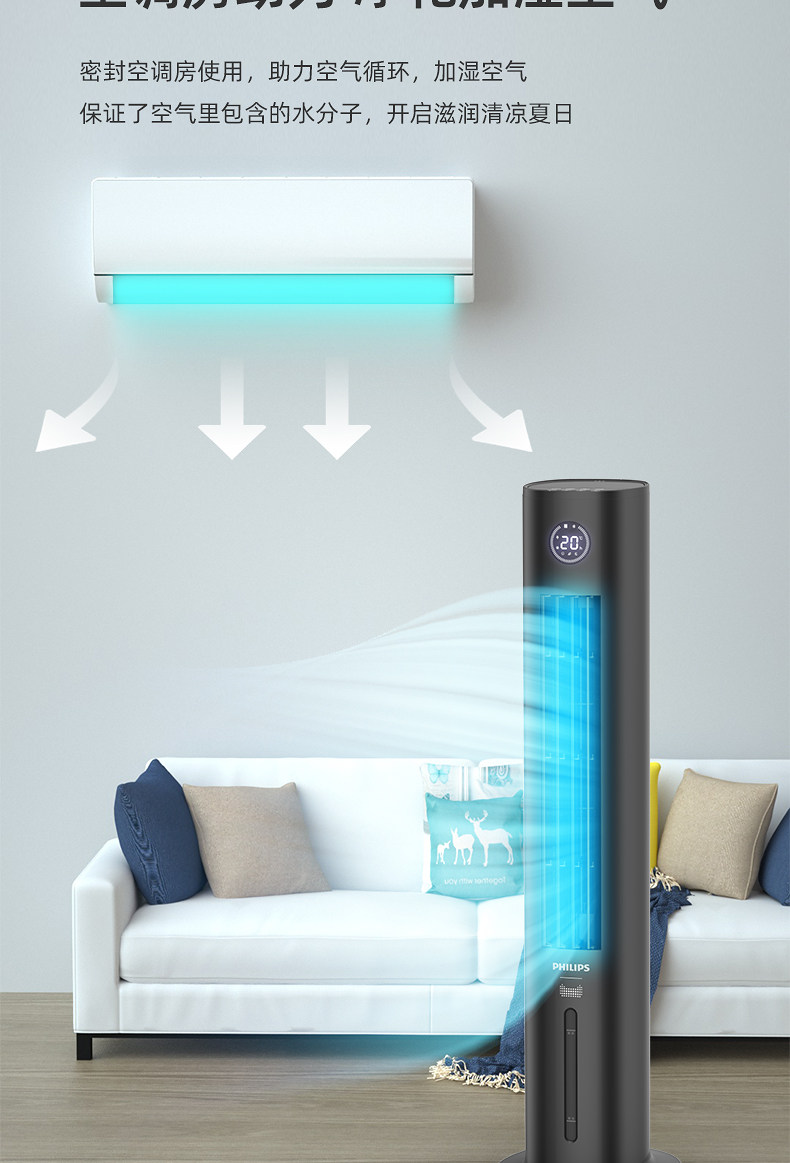 Philips Air -Conditioning вентилятор домохозяйства DC Инвертор холодный вентилятор Механизм холодного ветра Охлаждение вентилятор холодильник водный воздух -кондиционирование маленького