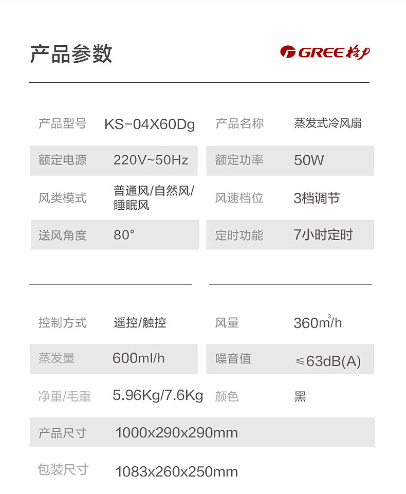 Вентилятор кондиционера Gree Conditioning Cold Fean Fan Move Water Conditioning KS-04X60DG Башня вентилятор холодный вентилятор