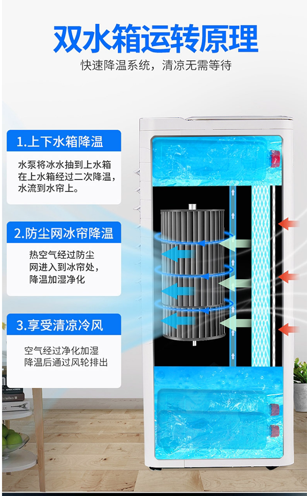 Вентилятор, горячие и холодные кубики льда
