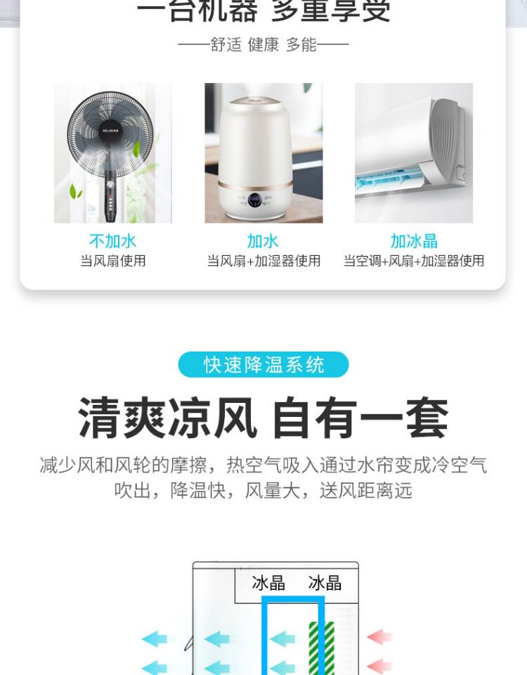 Вентилятор Mei Ling Conditioning Fan Охлаждающий вентилятор Добавить влажный холодный вентилятор. Домашний общежитие Добромождение водяное вентилятор Небольшой кондиционер