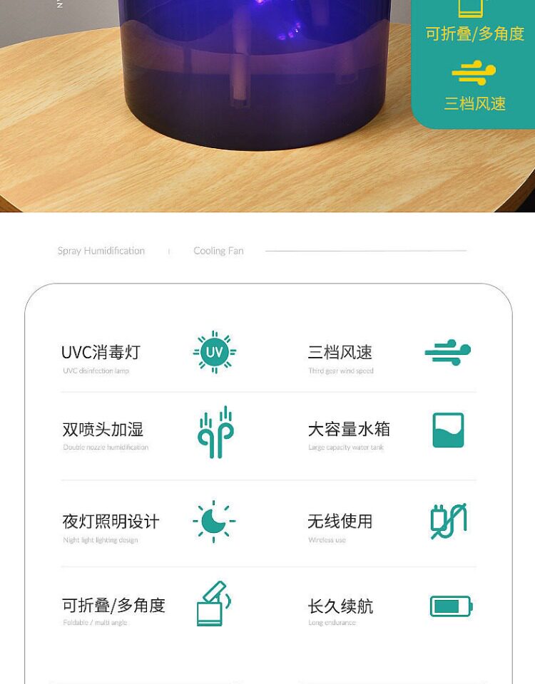 Маленький вентилятор, настольный охлаждающий антибактериальный спрей
