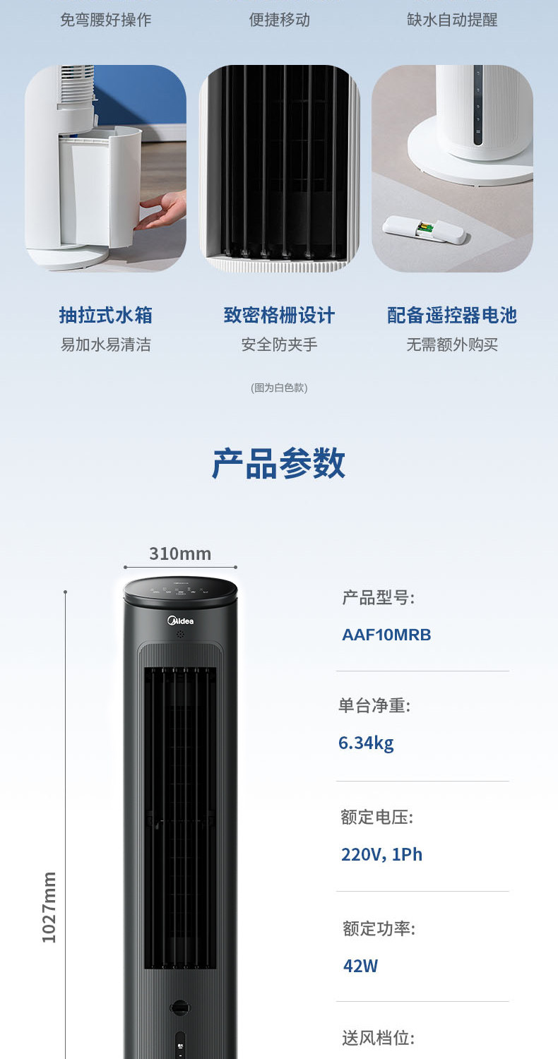Midea Air -Conditioning Вентилятор Home Hold Air Machine холодный вентилятор холодный вентилятор -кондиционирование водяного воздуха -кондиционирования маленького мобильного вентилятора AAF10MRB