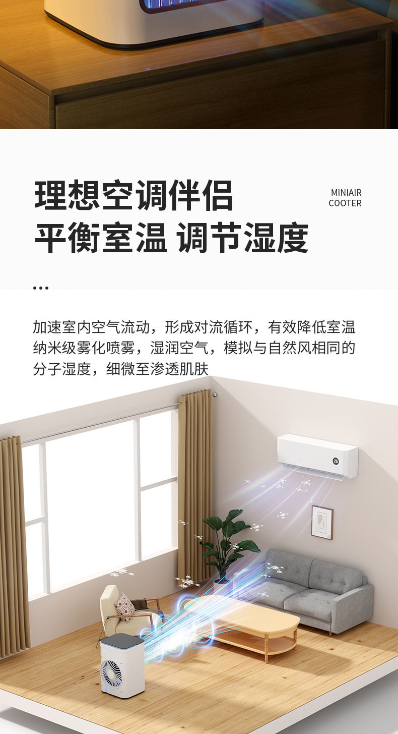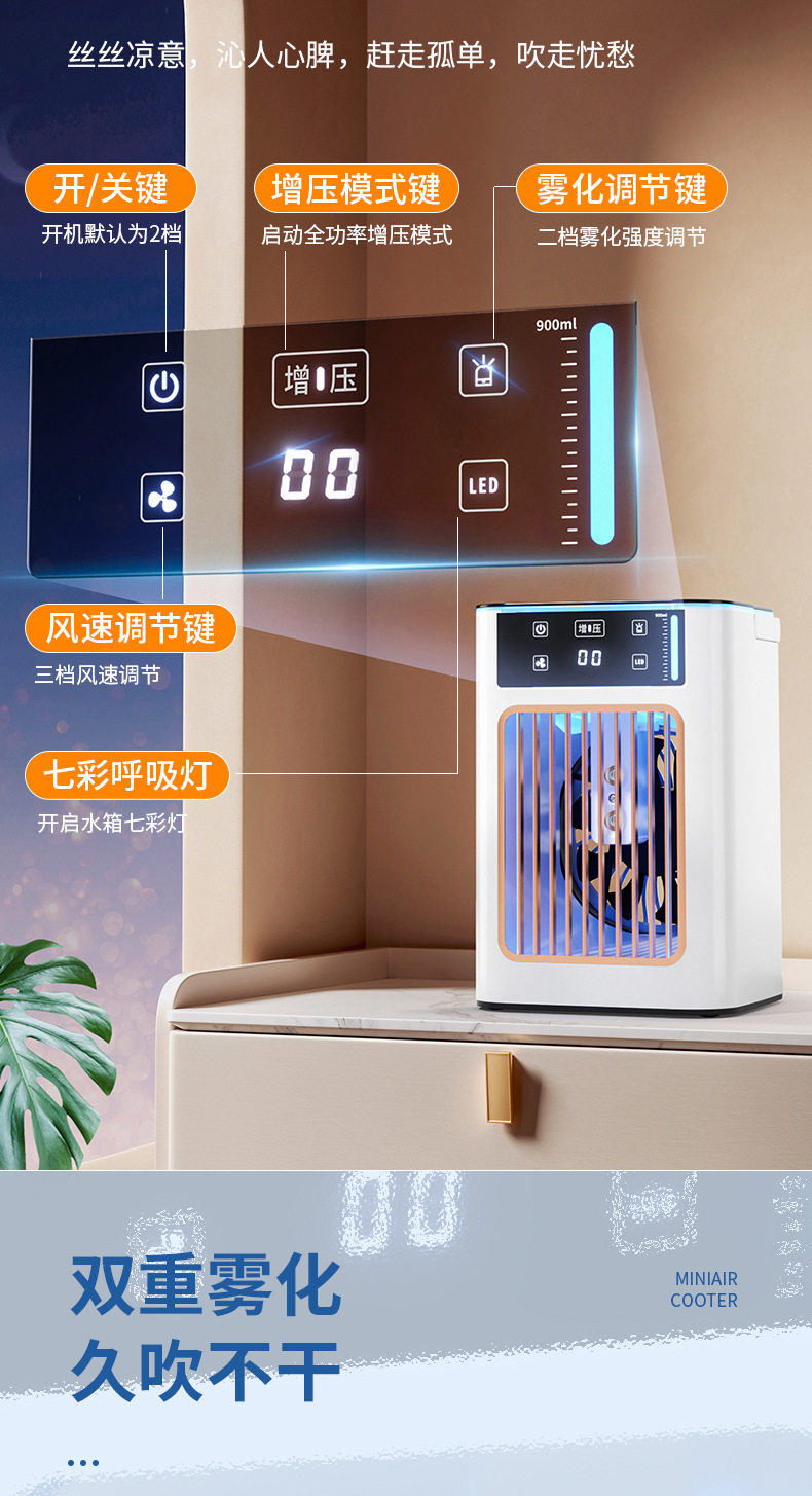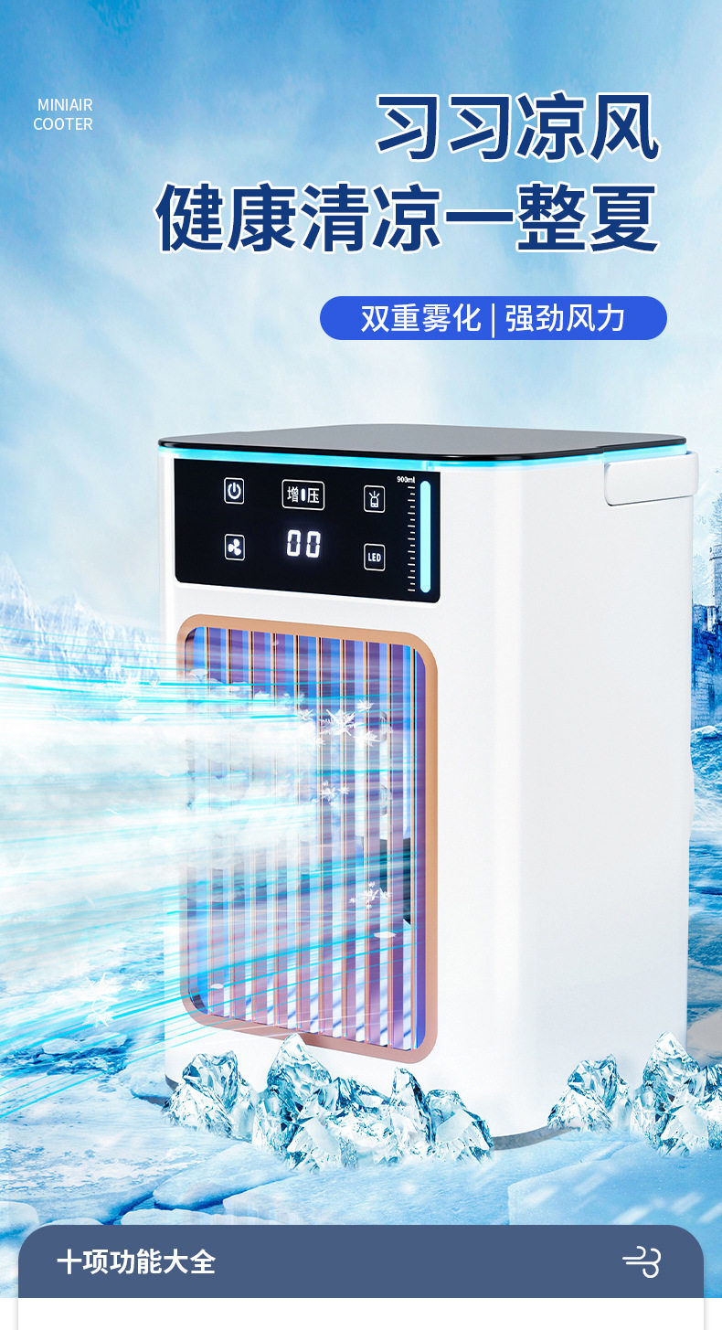 Немецкий настольный кондиционер. Вентилятор домохозяйства маленькая холодная воздушная машина холодная маленькая кондиционера в общеживающую воду и холодный вентилятор вентилятор туман из вентилятора.