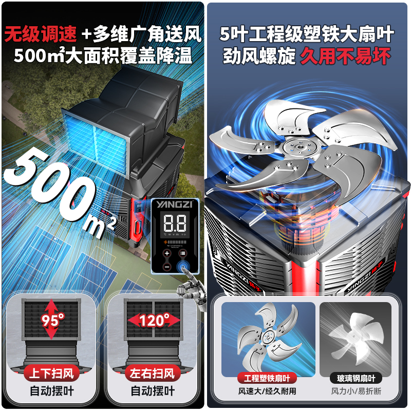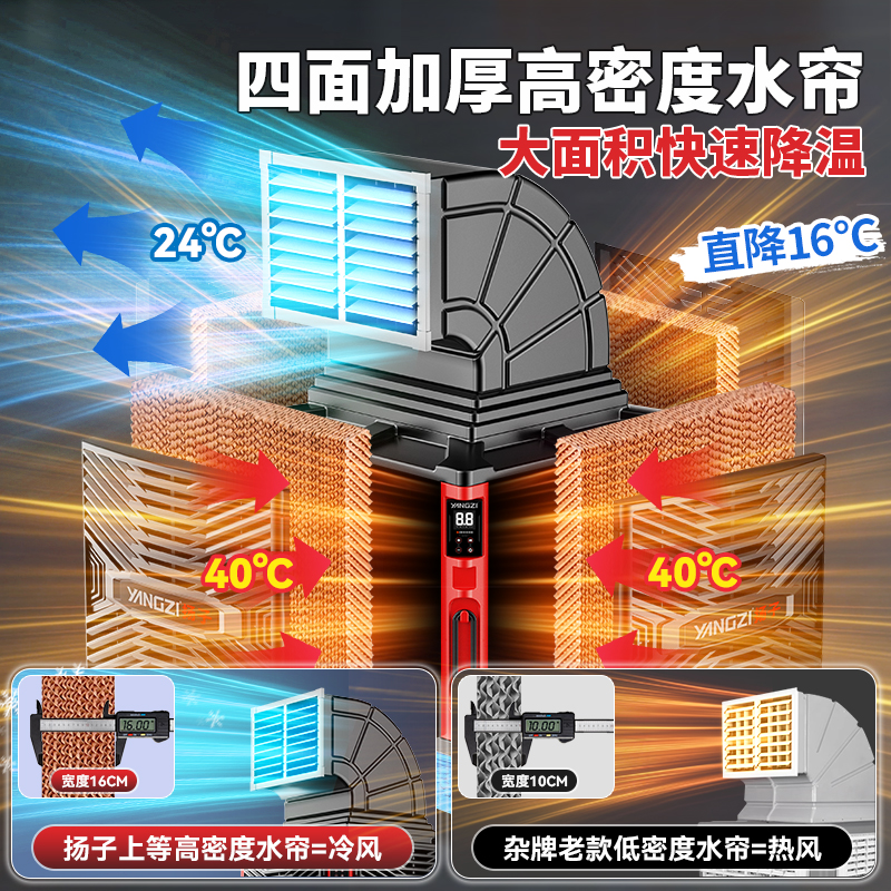 Мобильный воздухоохладитель Yangzi, промышленный экологически чистый вентилятор кондиционера с водяным охлаждением, большой заводской коммерческий испарительный одиночный холодильный вентилятор