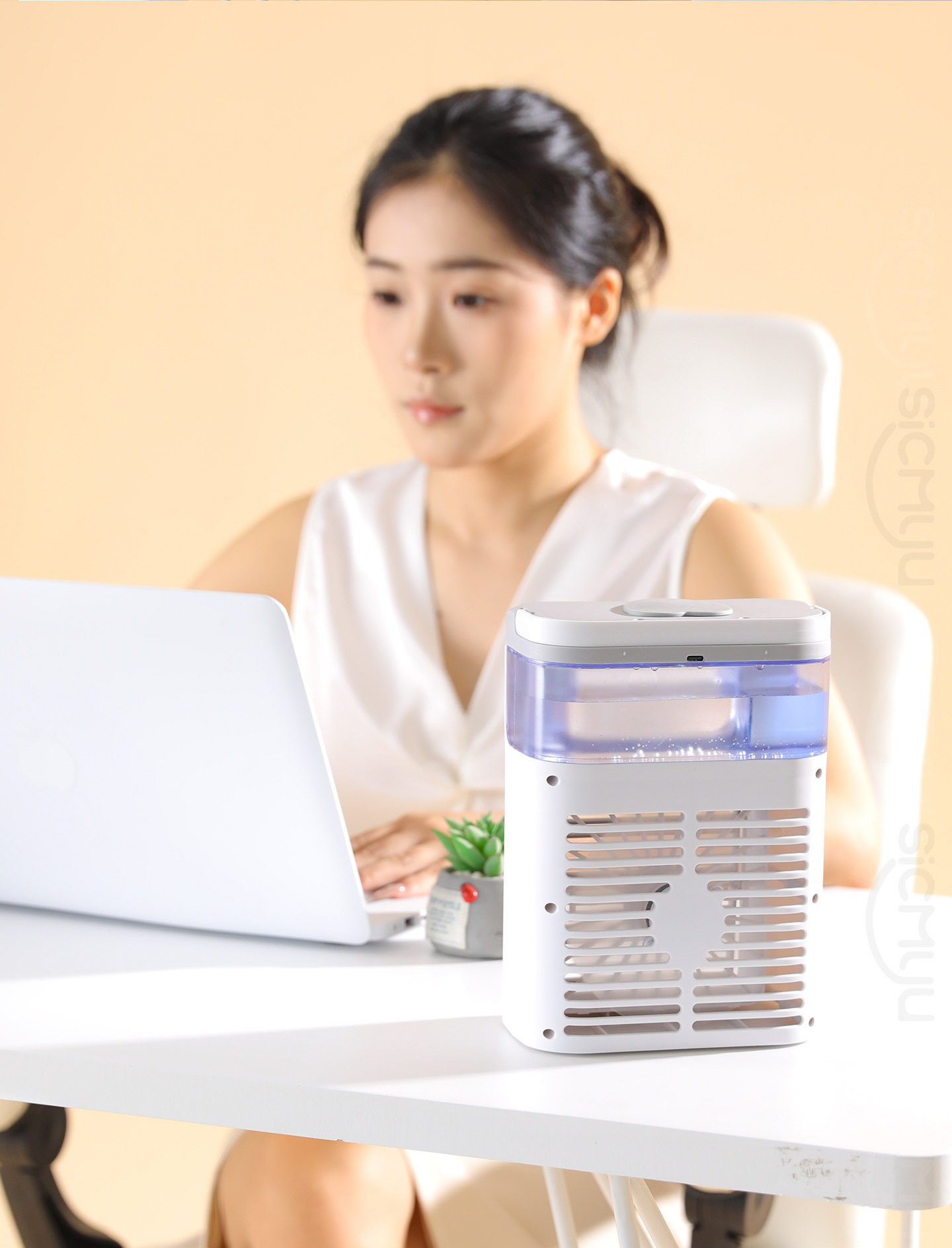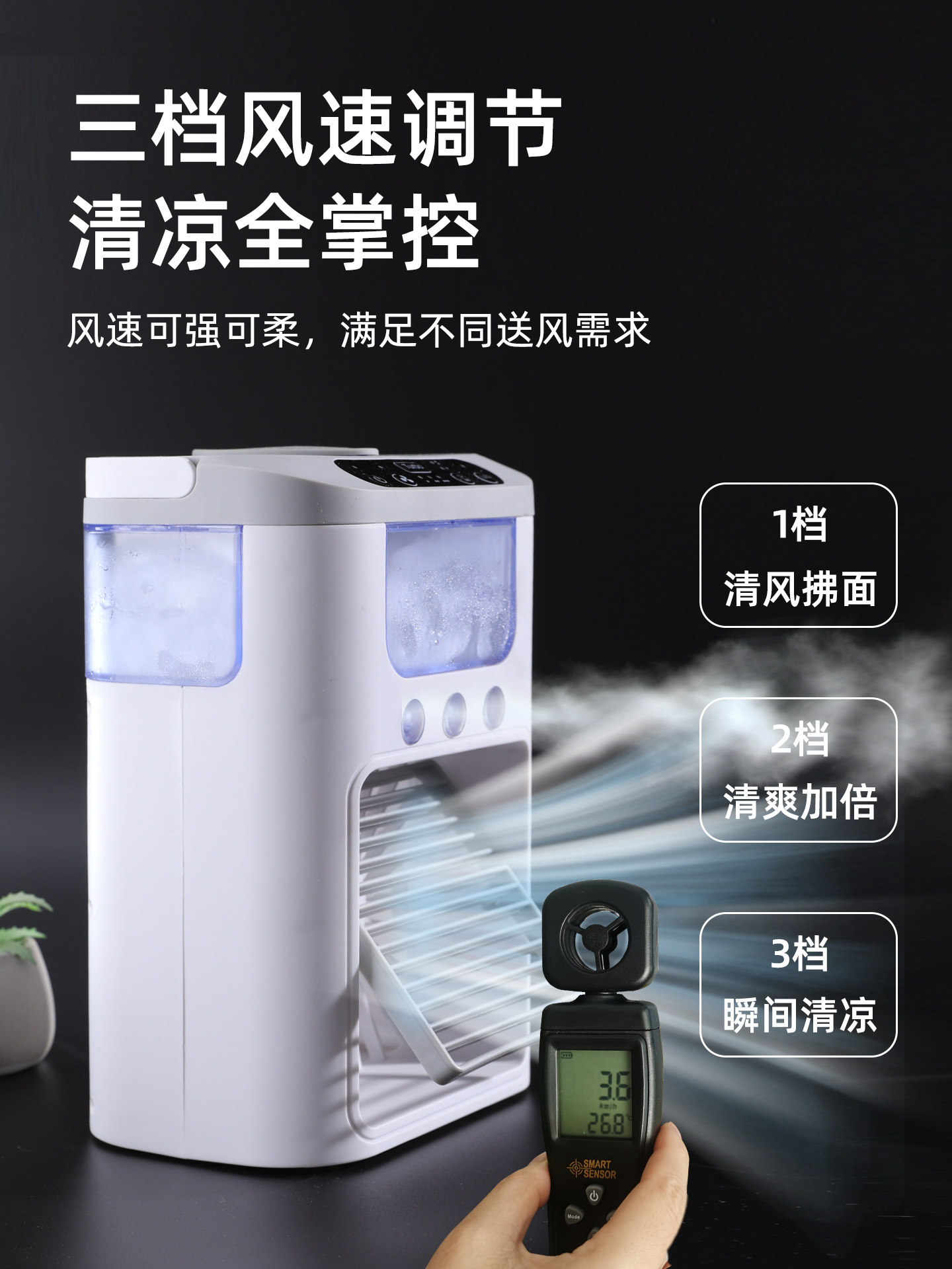 Холодильный электрический вентилятор плюс ледяной куб и хрустальный хрустальный кубик с водой