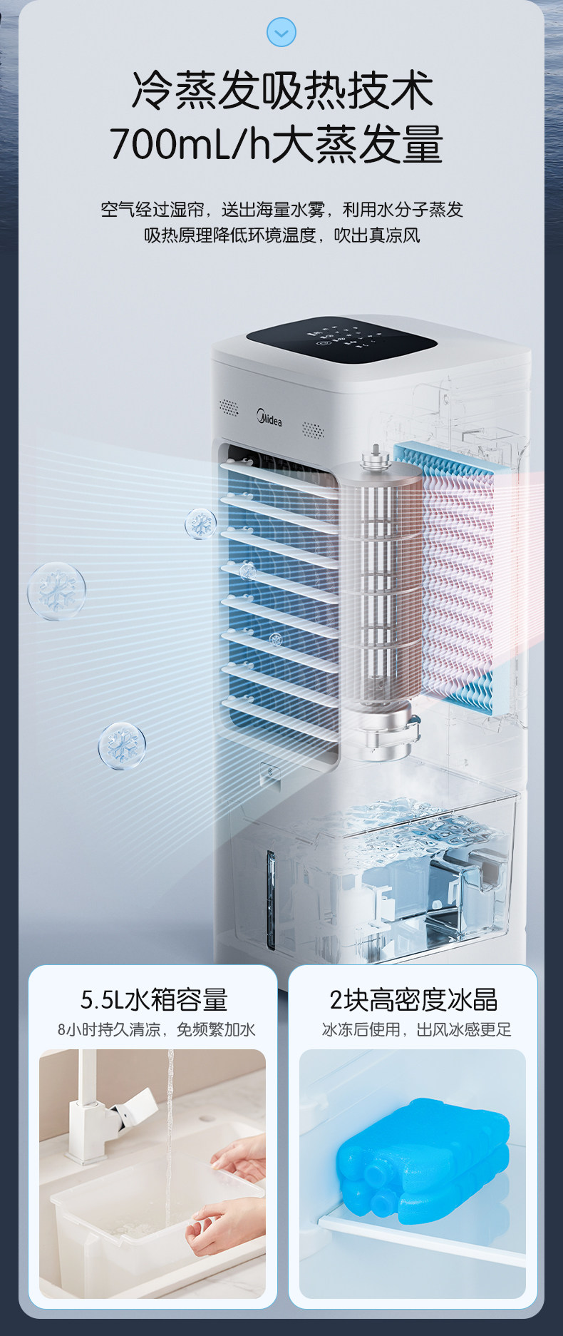 Вентилятор кондиционера Midea, мобильный бытовой вентилятор водяного охлаждения, большой объем воздуха, башенный воздушный охладитель, маленький новый официальный флагман