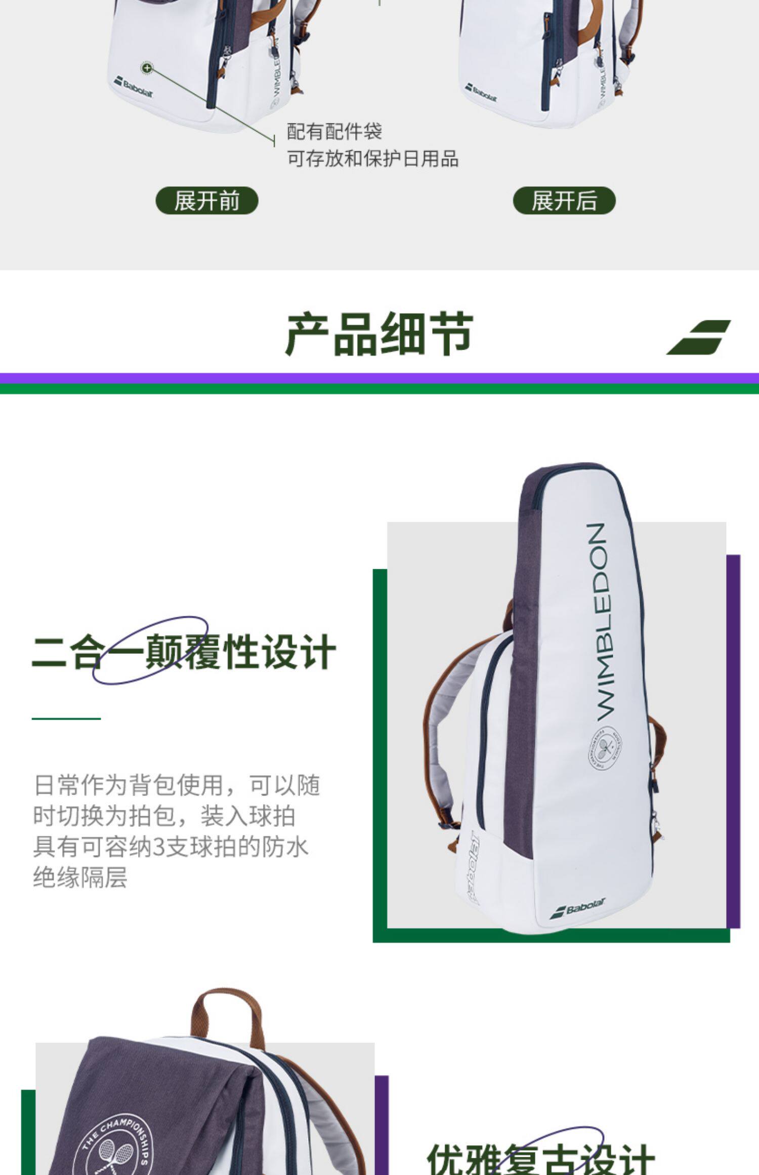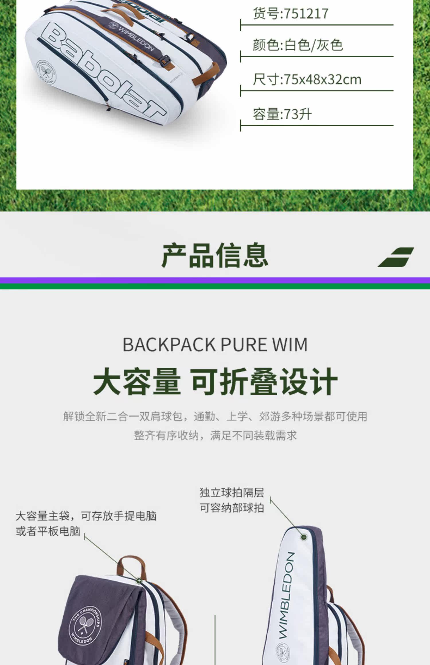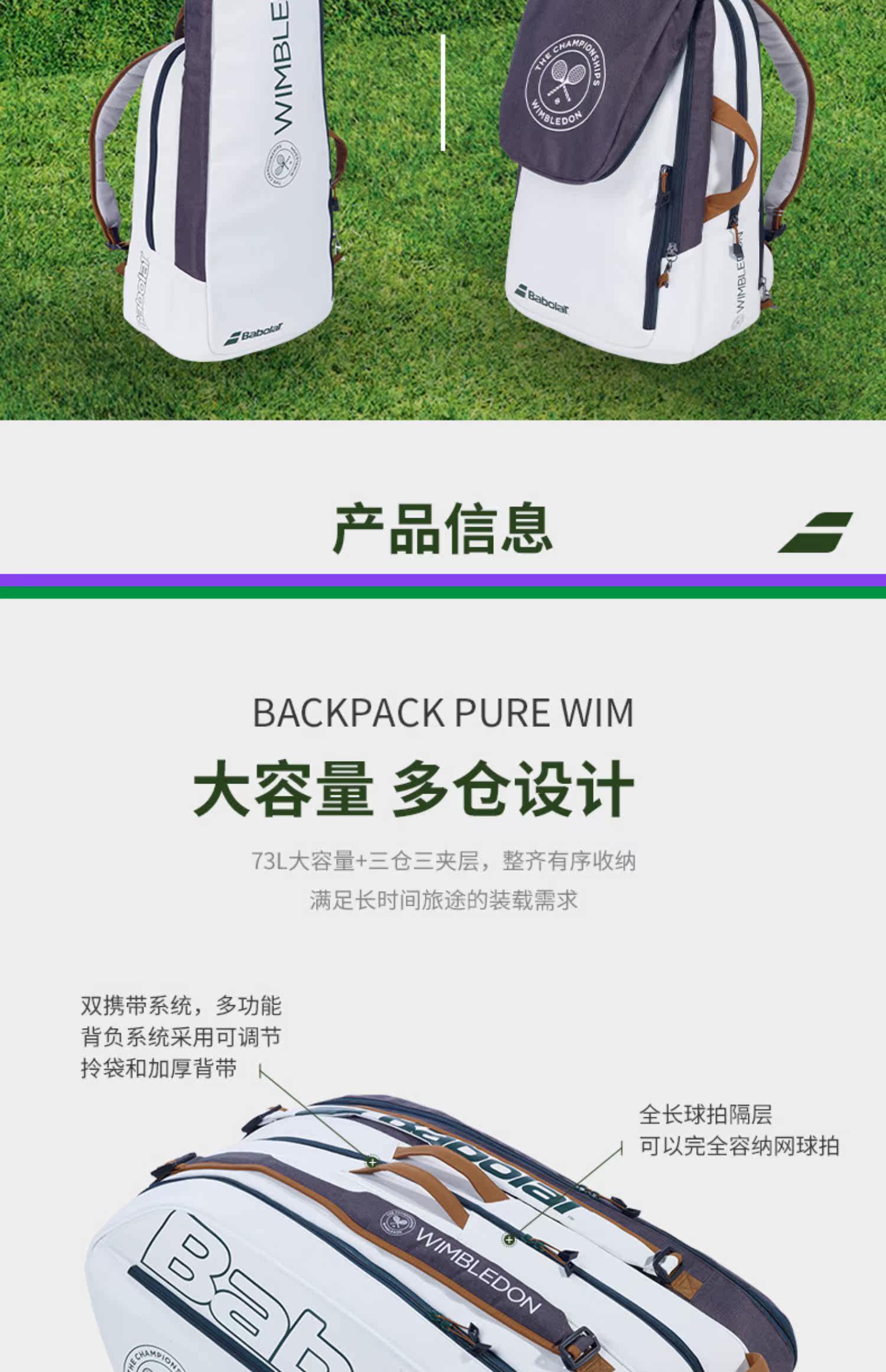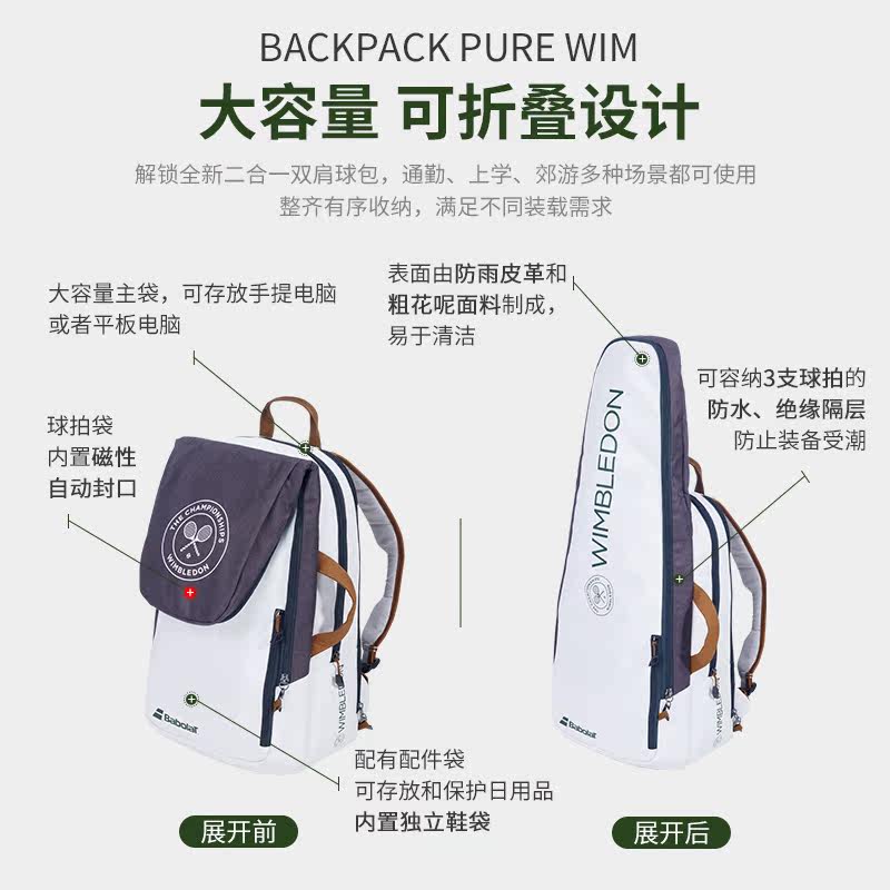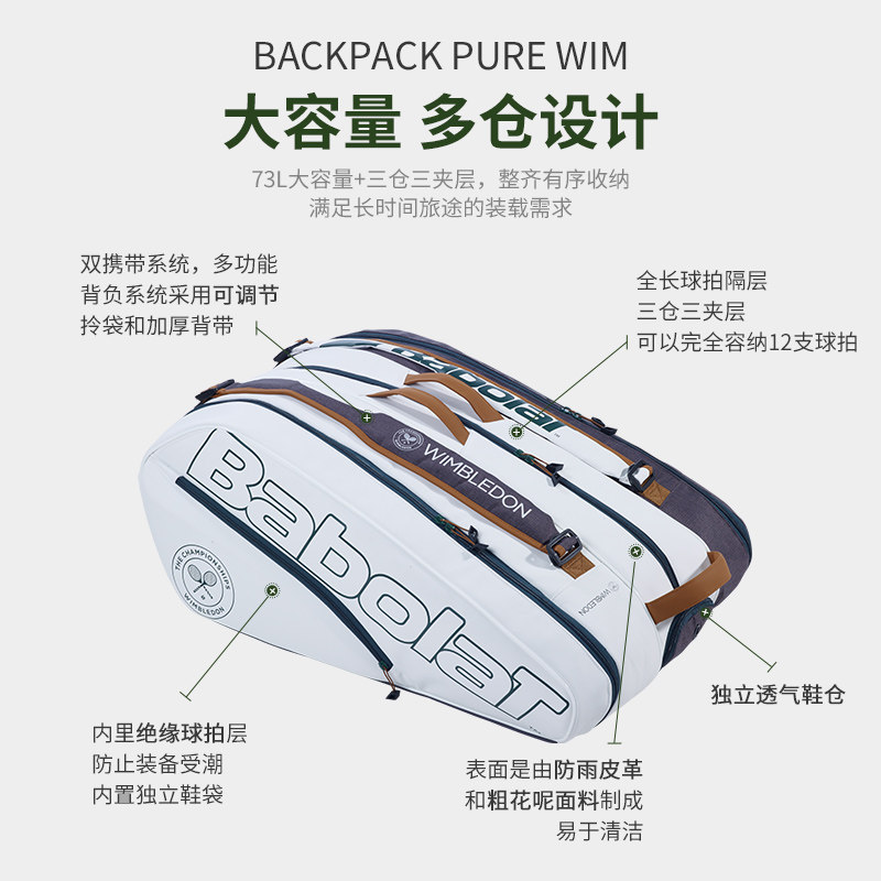 Babolat Baibaoli Tennis Sack Bag Back Wimbledon рюкзак Pure Wim2023 New Memorial