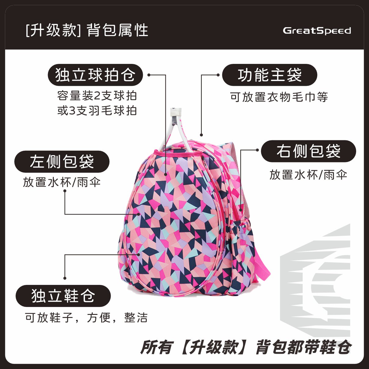 Теннисная вместительная и большая ракетка для бадминтона подходит для мужчин и женщин, модный универсальный спортивный рюкзак, городской стиль