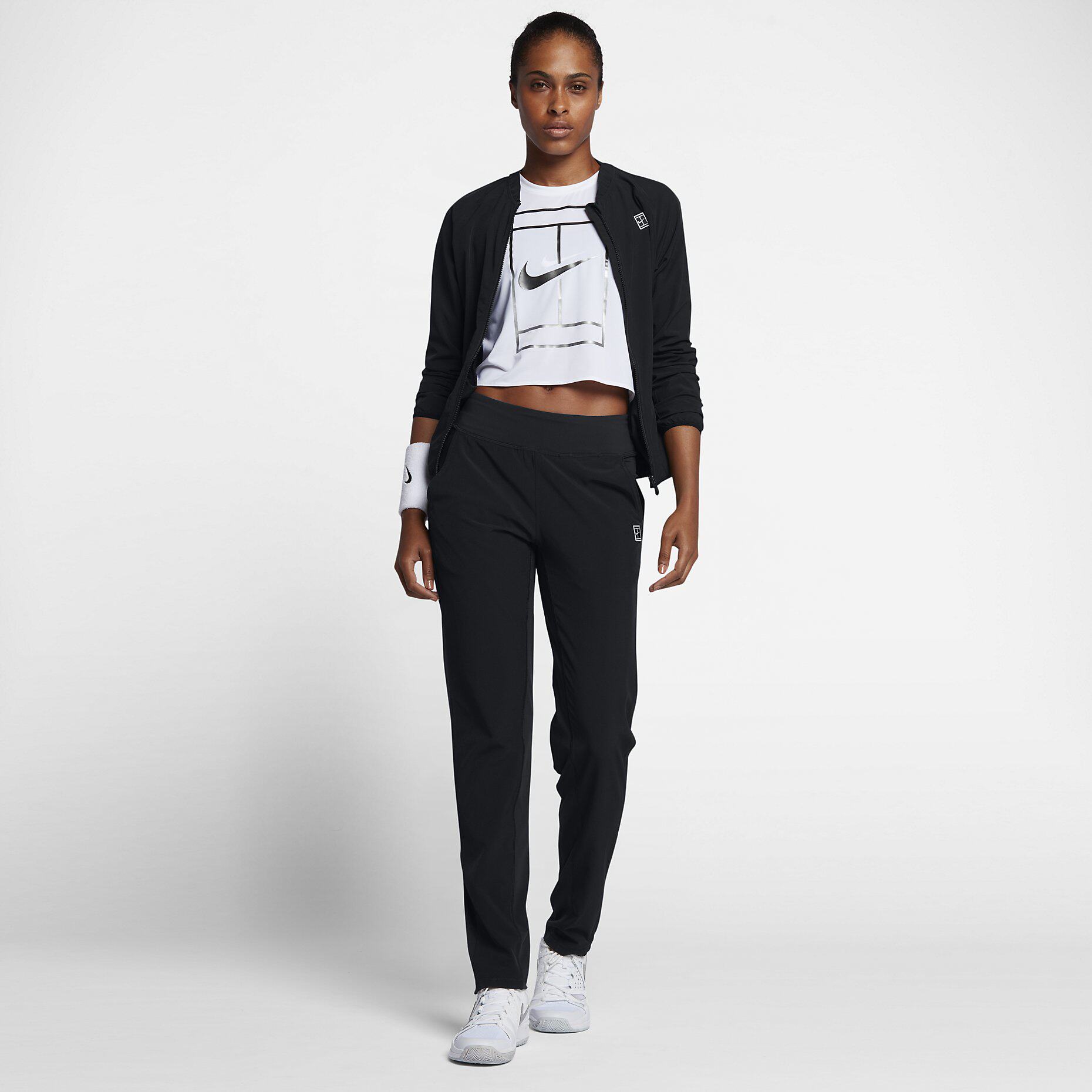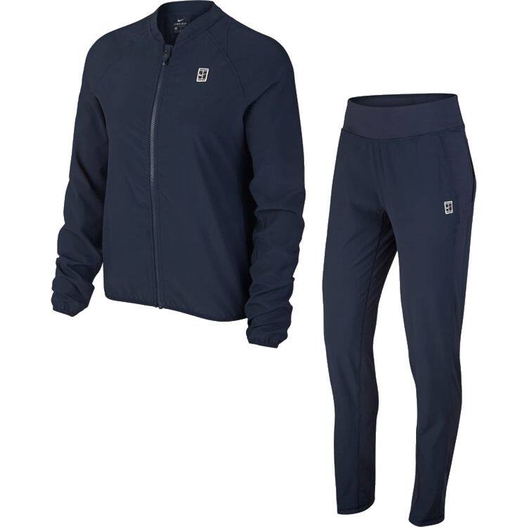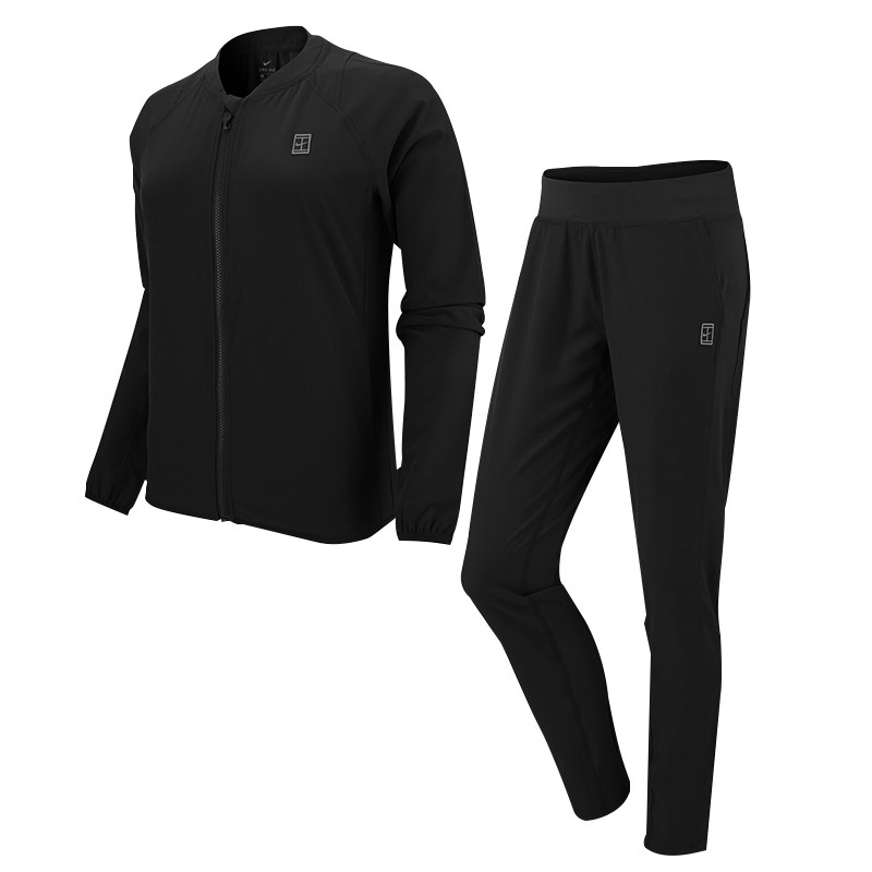 Женский теннисный набор NikeCourt содержит полную куртку на молнии и пару случайных брюк.