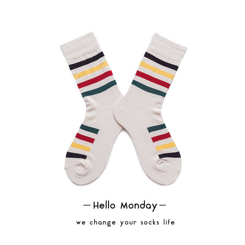 [Дополнительные пять пар бесплатной доставки] Цветные полосатые хлопковые носки Персональные носки, нейтральные модные модные носки