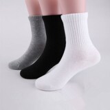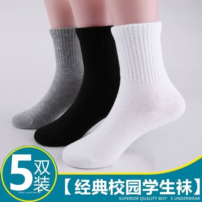 Детские хлопковые белые черные носки для мальчиков, спортивные осенние гольфы для школьников, средней длины, 10 лет