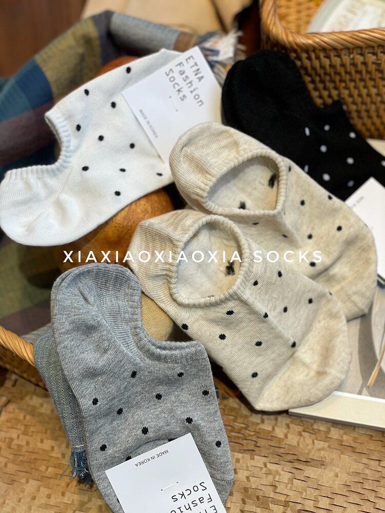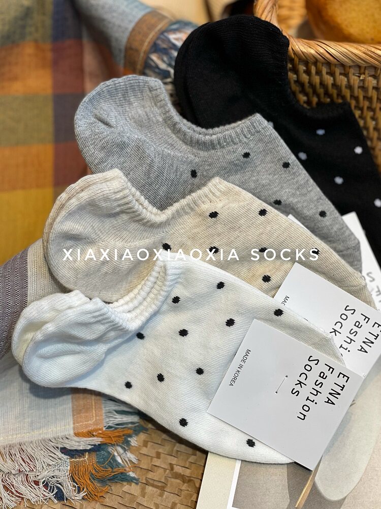 [Полные пять пар бесплатной доставки] Корейские импортированные женские носки судов, маленькие точечные точки, даже хлопковые носки, легкие носки рта, удобные хлопковые носки