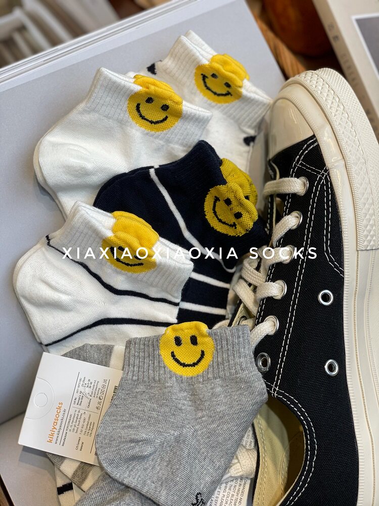 [Полные пять пар бесплатной доставки] Корейские импортные носки Spot Ladies Хлопковые носки низкие полезные смайливые летние новые носки