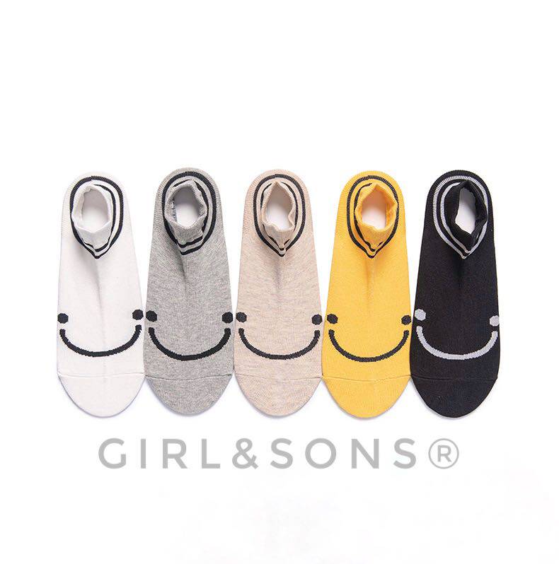 [Полные пять паров бесплатной доставки] Светлые носки, носки с низким содержанием лодок, два бара и смайливые модели дизайна лица летние хлопковые тренды