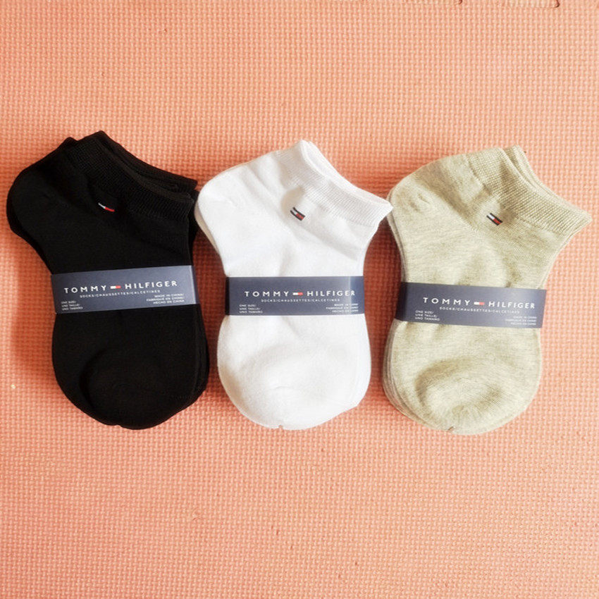 3 Double/6 Double Tommy Tommy Nocks Pure Cotton Men and Women Nops So Nocs, повседневные спортивные носки, черно -белый серый