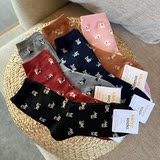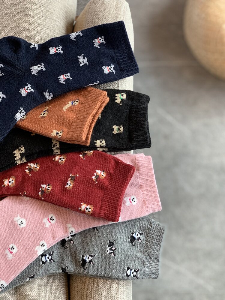 [Полные пять пар бесплатной доставки] Корейские импортированные женские хлопковые носки с четырьмя сезонами толщины в стиле щенков в стиле щенка в рисунке чулков