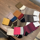 [Полные пять пар бесплатной доставки] Корейские импортные хлопковые женские носки, цветные полосы, псевдо -колорированные новые модные носки в середине