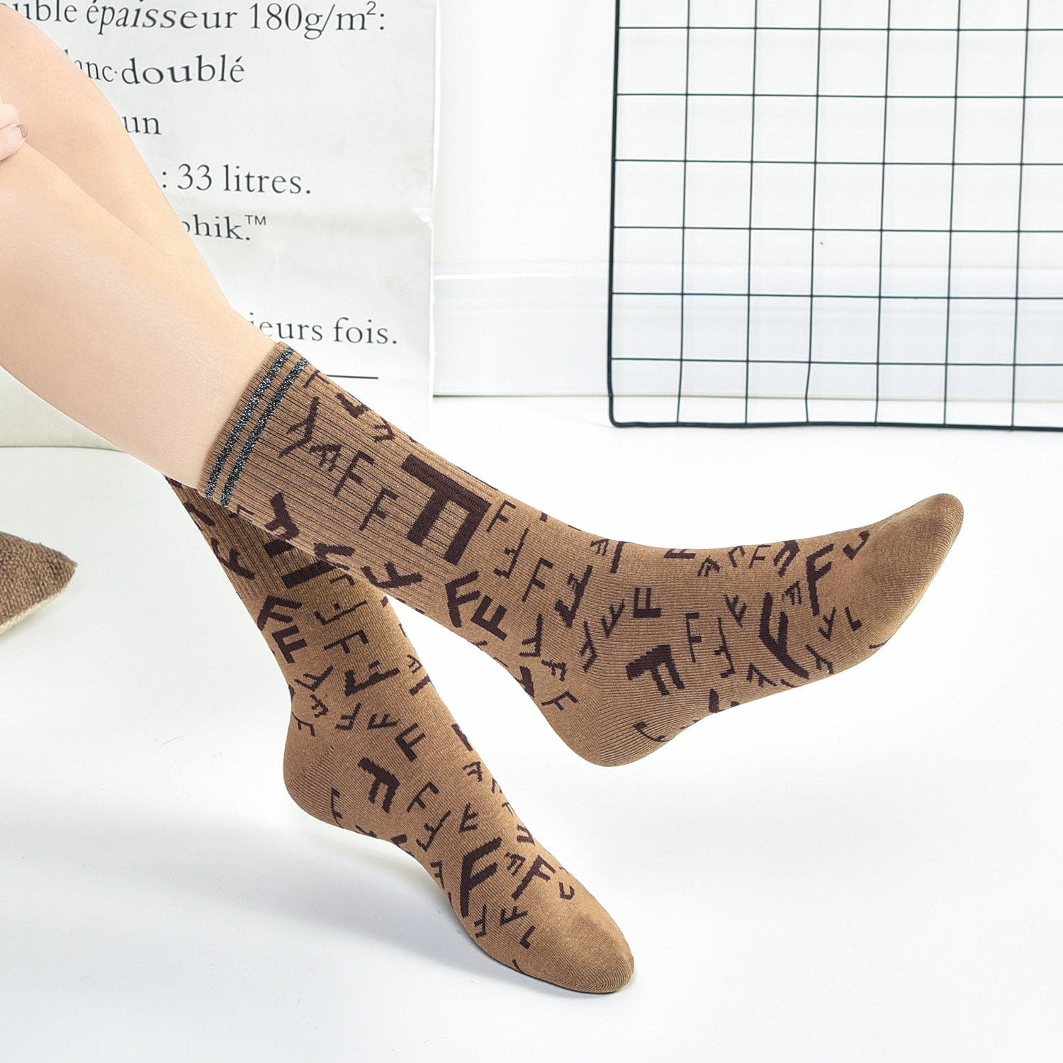 TikTok, трендовые брендовые спортивные хлопковые носки, популярно в интернете, в корейском стиле, средней длины