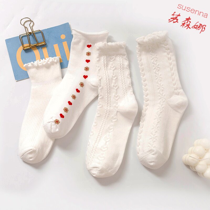Белые носки, японские гольфы, униформа для школьников, средней длины, стиль Лолита