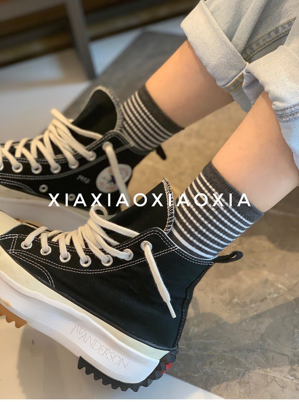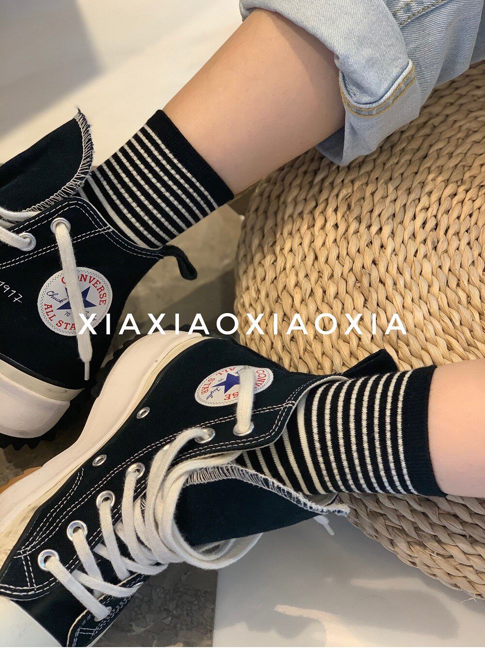 [Полные пять пар бесплатной доставки] Южная Корея импортированная подлинная точка женских носков Средняя толщина, и четыре сезона могут быть тонкими полосками хлопковых носков