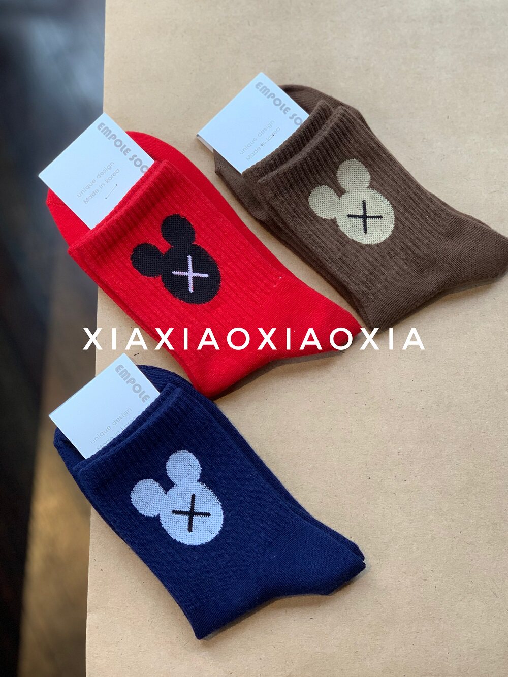 [Полные пять паров бесплатной доставки] Корейские подлинные импортированные женские носки расчесали хлопковые красные носки для модных носков, я носки Mickey Socks