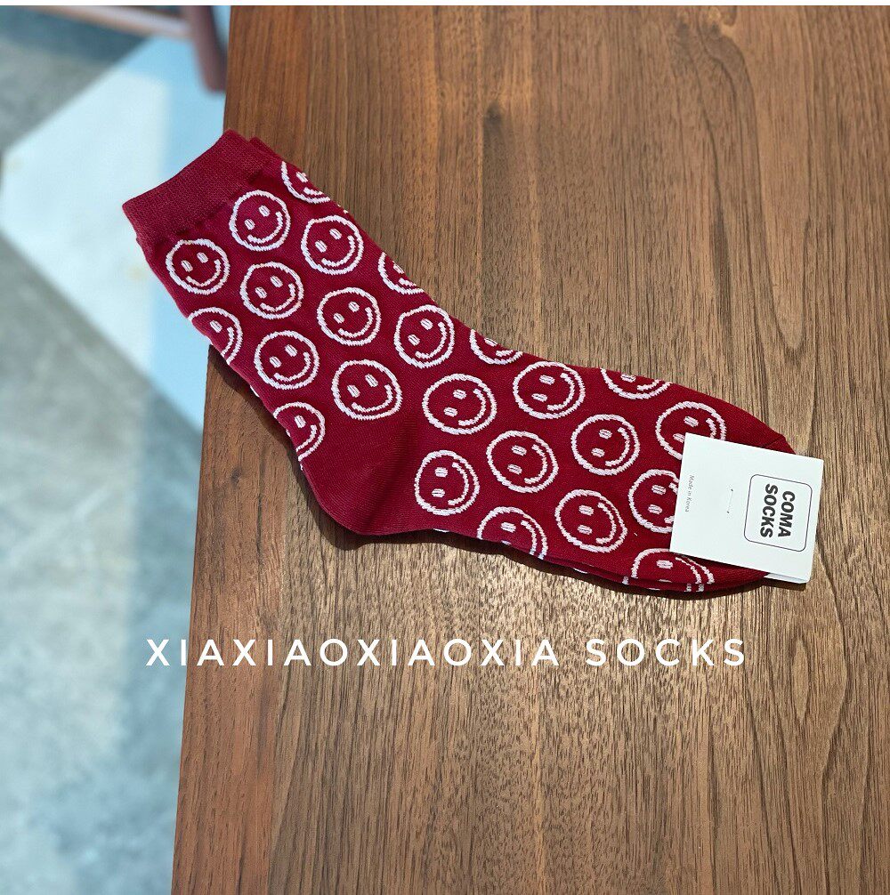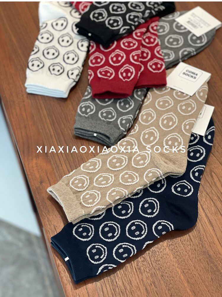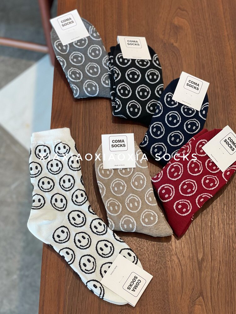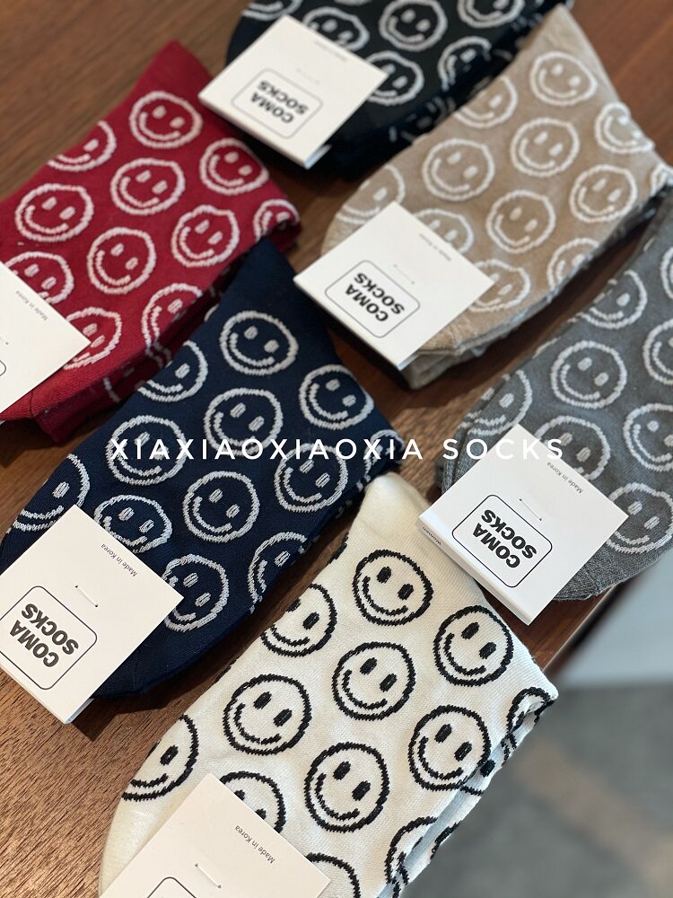 [Полные пять пар бесплатной доставки] Корейские роскошные женские носки со смехом лицом в носках прилива, обычная толщина, четыре сезона хлопковые носки
