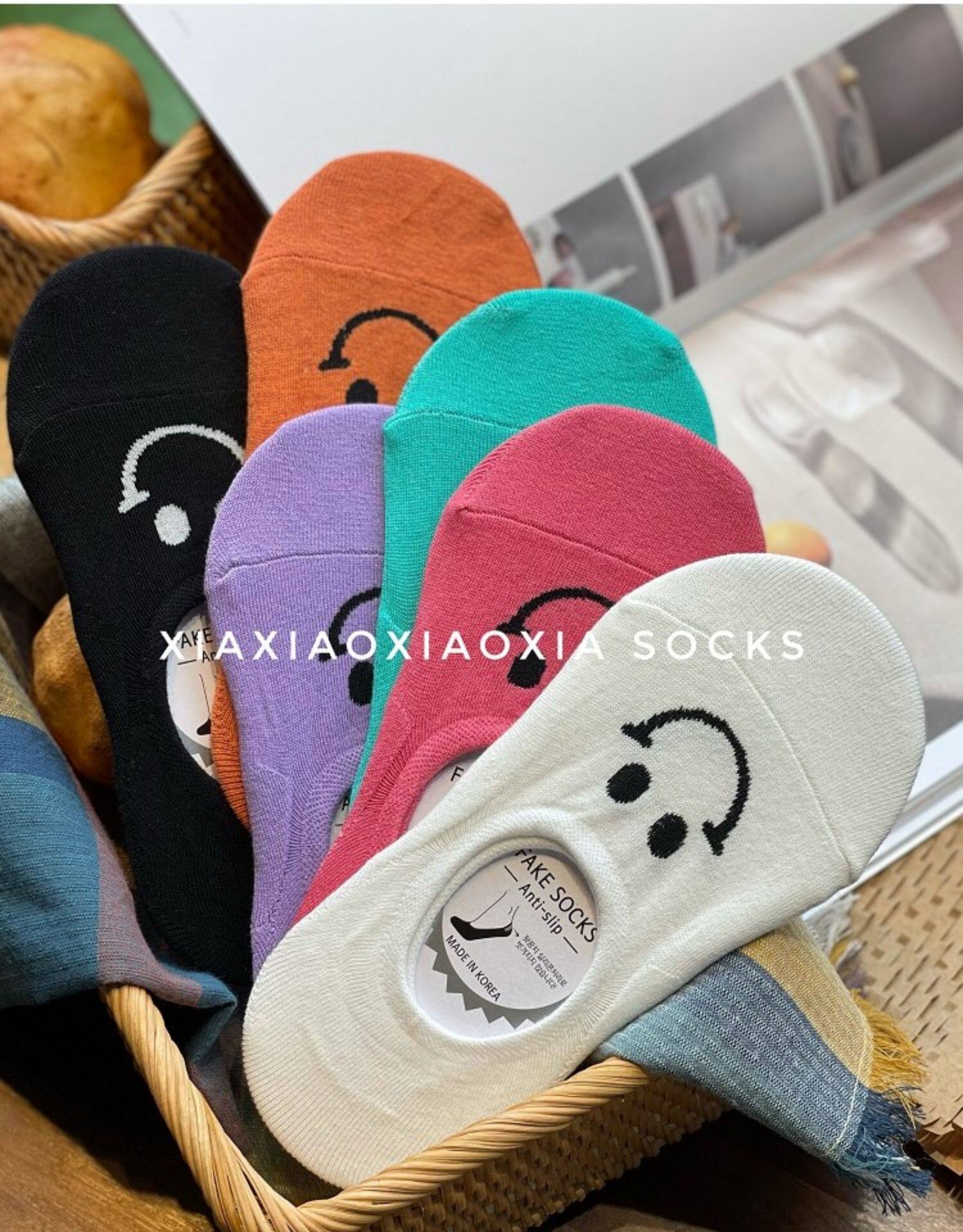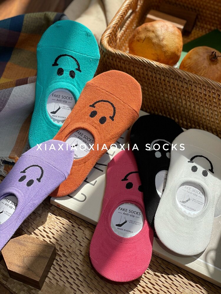 [Полные пять пар бесплатной доставки] Корейские импортные женщины в летних носках носков лодки смайлики неглубокие хлопковые носки