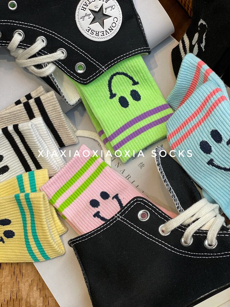 Южнокорейский летний флуоресцентный товар, гольфы, из ворсистого хлопка, средней длины