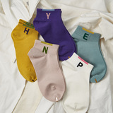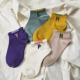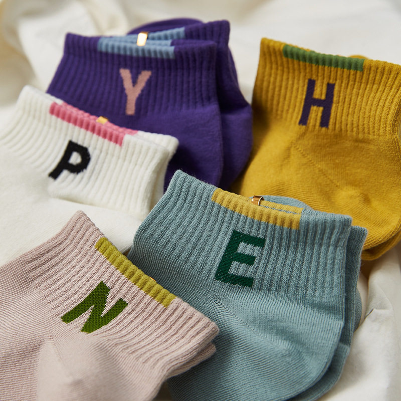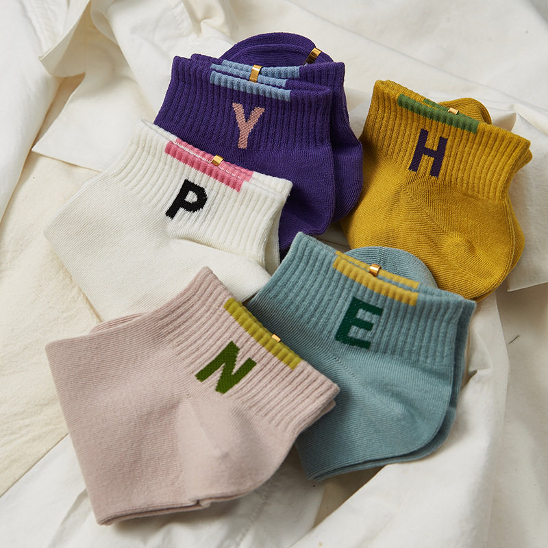 [Полные пять пар бесплатной доставки] Весенние и летние женские носки в стиле колледжа вдохновляющие носки, контрастные алфавиты, расчесываемые хлопковые носки