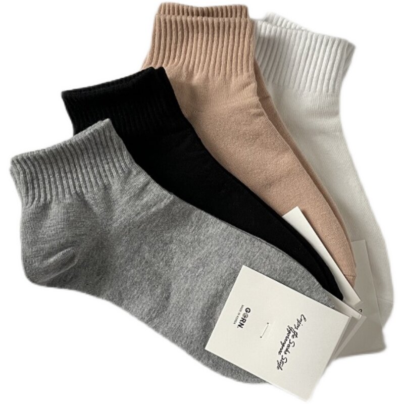 [Полные пять паров бесплатной доставки] Корейская точка с низким содержанием сплошного цвета хлопковые носки мужские носки и женские носки, простые универсальные носки