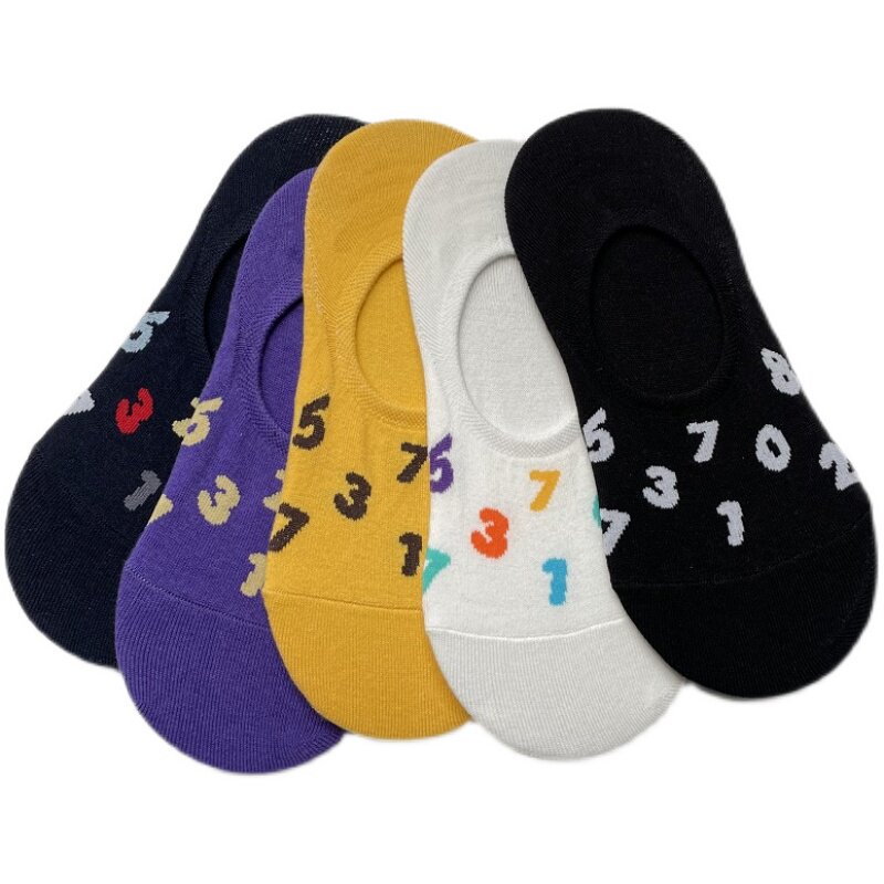 [Полные пять пар бесплатной доставки] Южная Корея импортировали носки летних кораблей, хлопковые хлопковые дамы световые носки, цифровые невидимые наборы носков