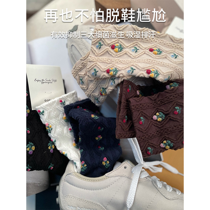 [Полные пять паров бесплатной доставки] Корейские импортные женские носки Осенние женские носки Японские сельские ветры цветы ретро -европейские в стиле хлопковые носки