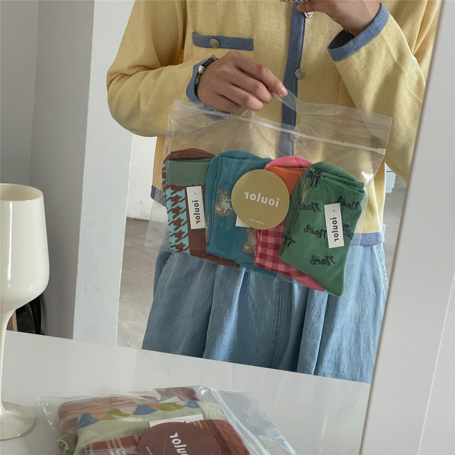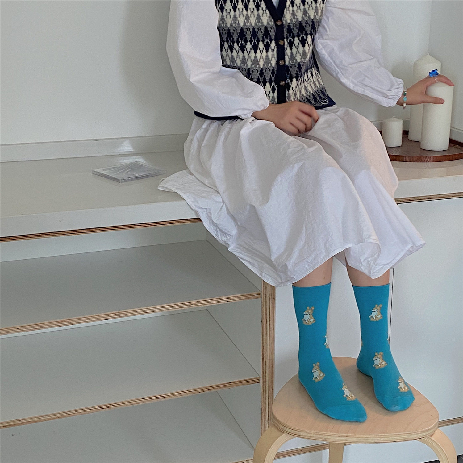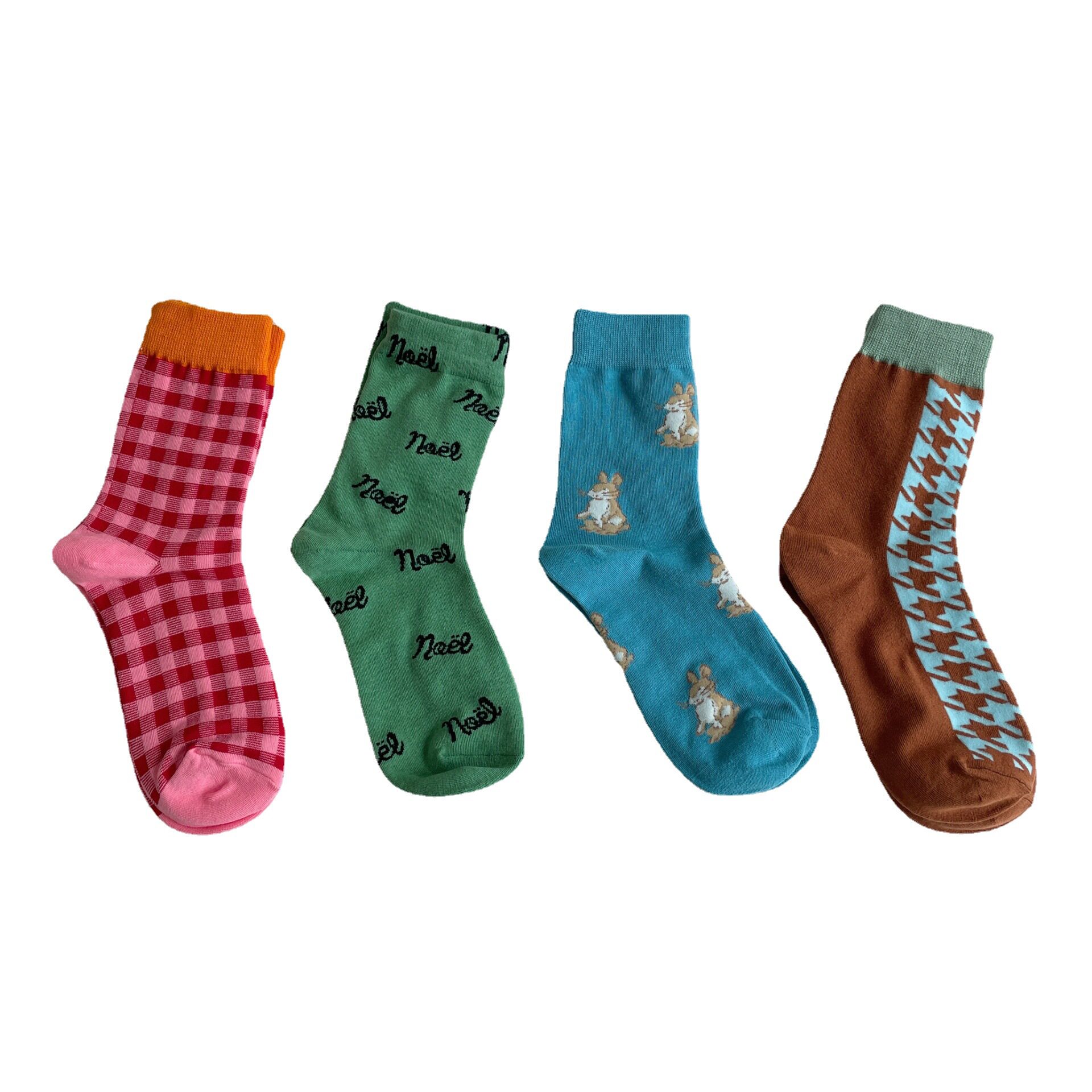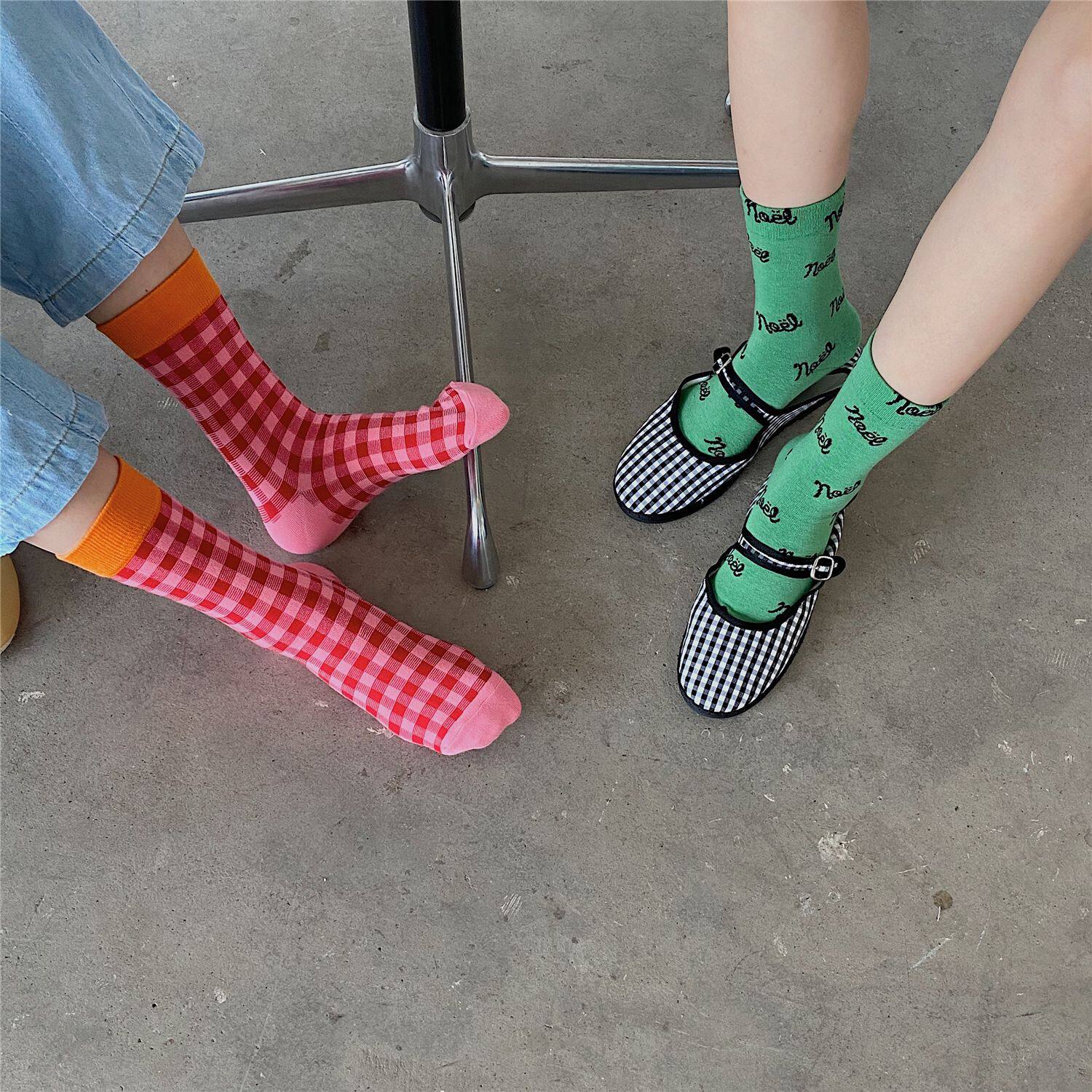 Группа IULOR из четырех пар небольших клетчатых носков, маленьких кроликов, груды носков, женская осенняя японская средняя упаковка носков