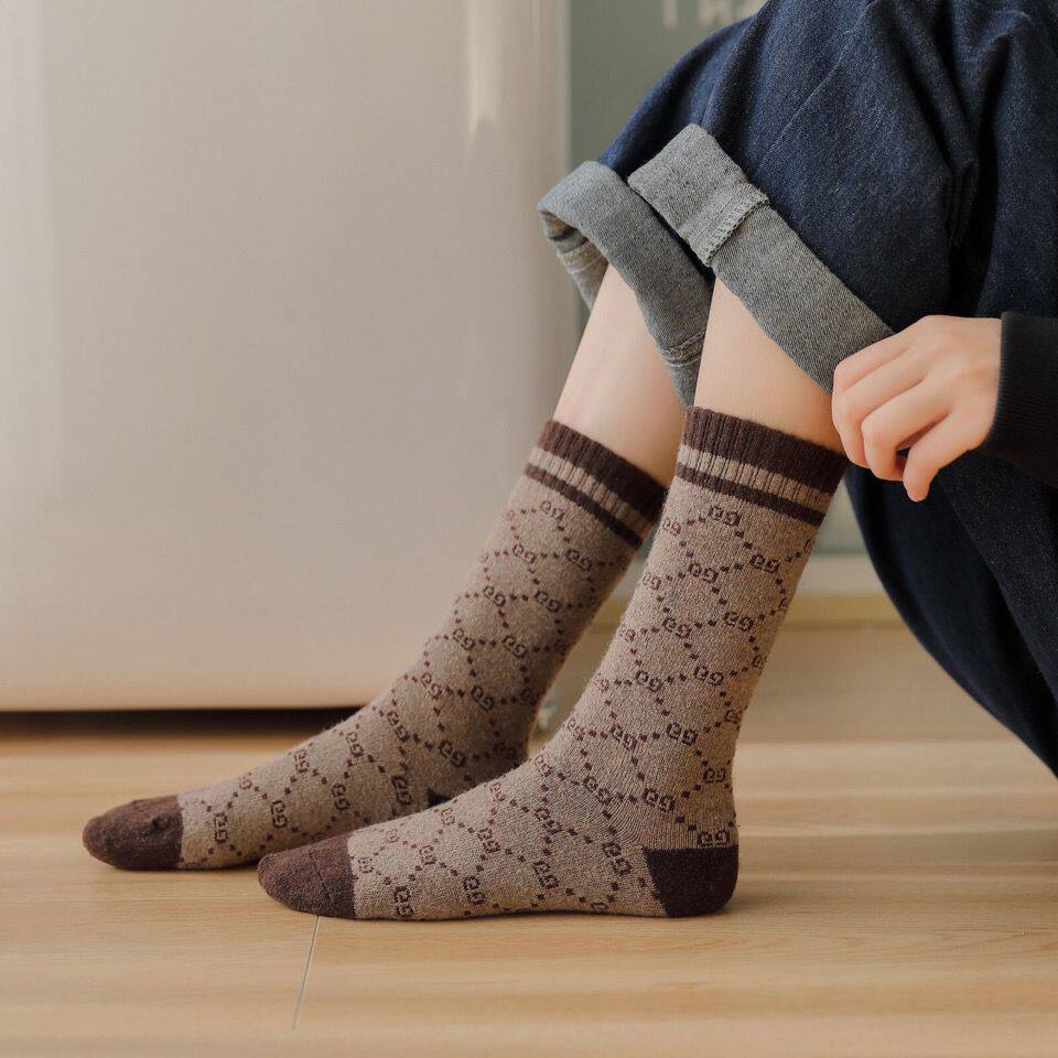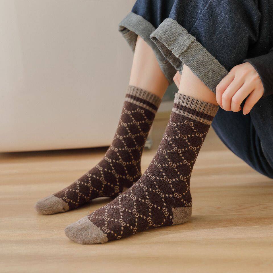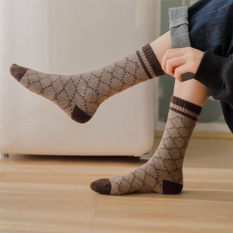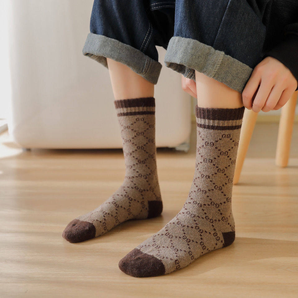 Шерстяные трендовые удерживающие тепло носки, увеличенная толщина, длина миди