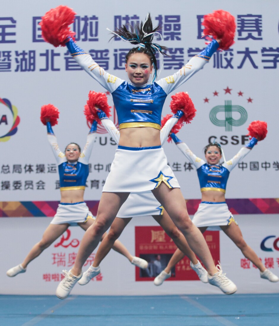 Студенты колледжа массовая аэробика для соревновательных конкурентов.