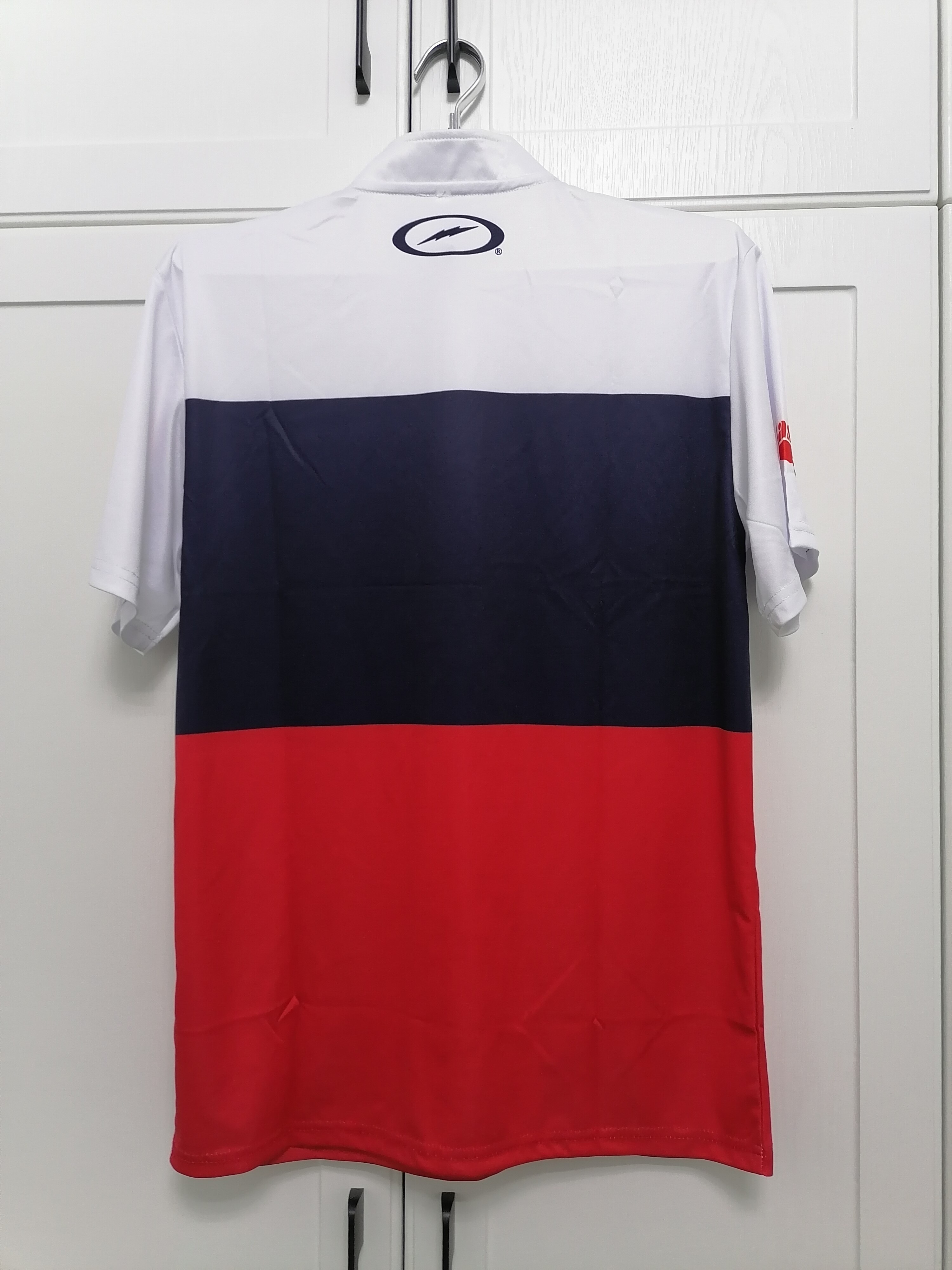 Bel Bowling Ball поставляет новый ярко -цветный стиль, белый синий красный стенд -Оп -воротнич