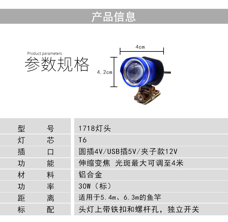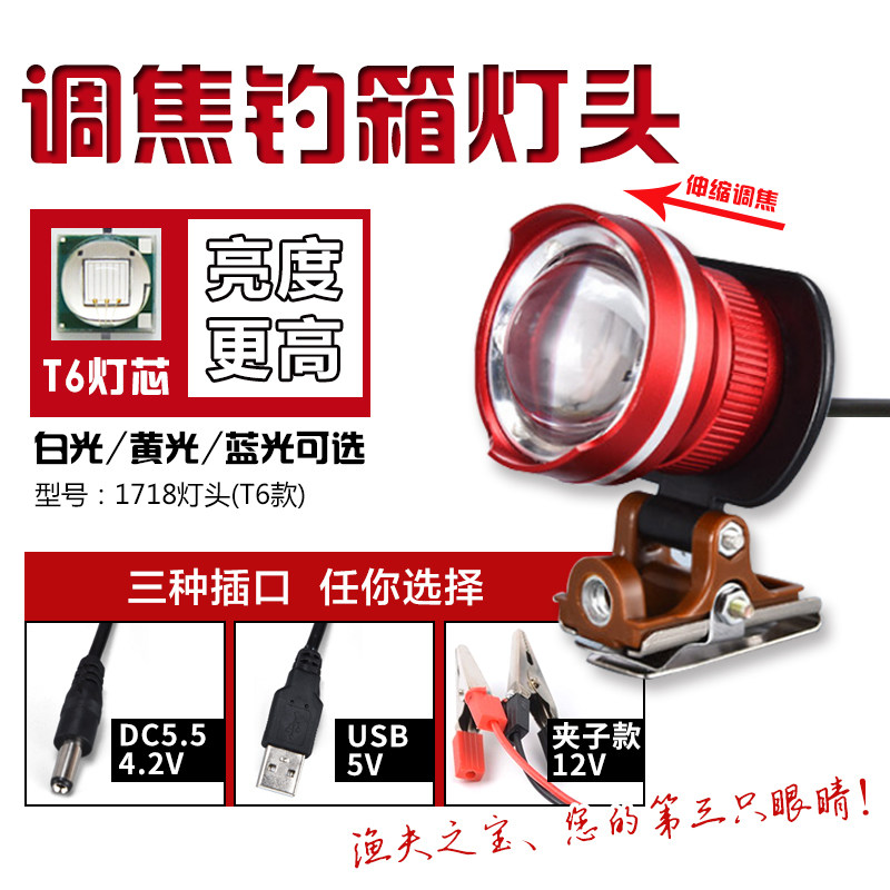 T6 Blu -Ray Zoom Head Blue Light 5V12V клип. Рыбалка ночная рыбалка ночная рыбалка Light Super яркая водонепроницаем